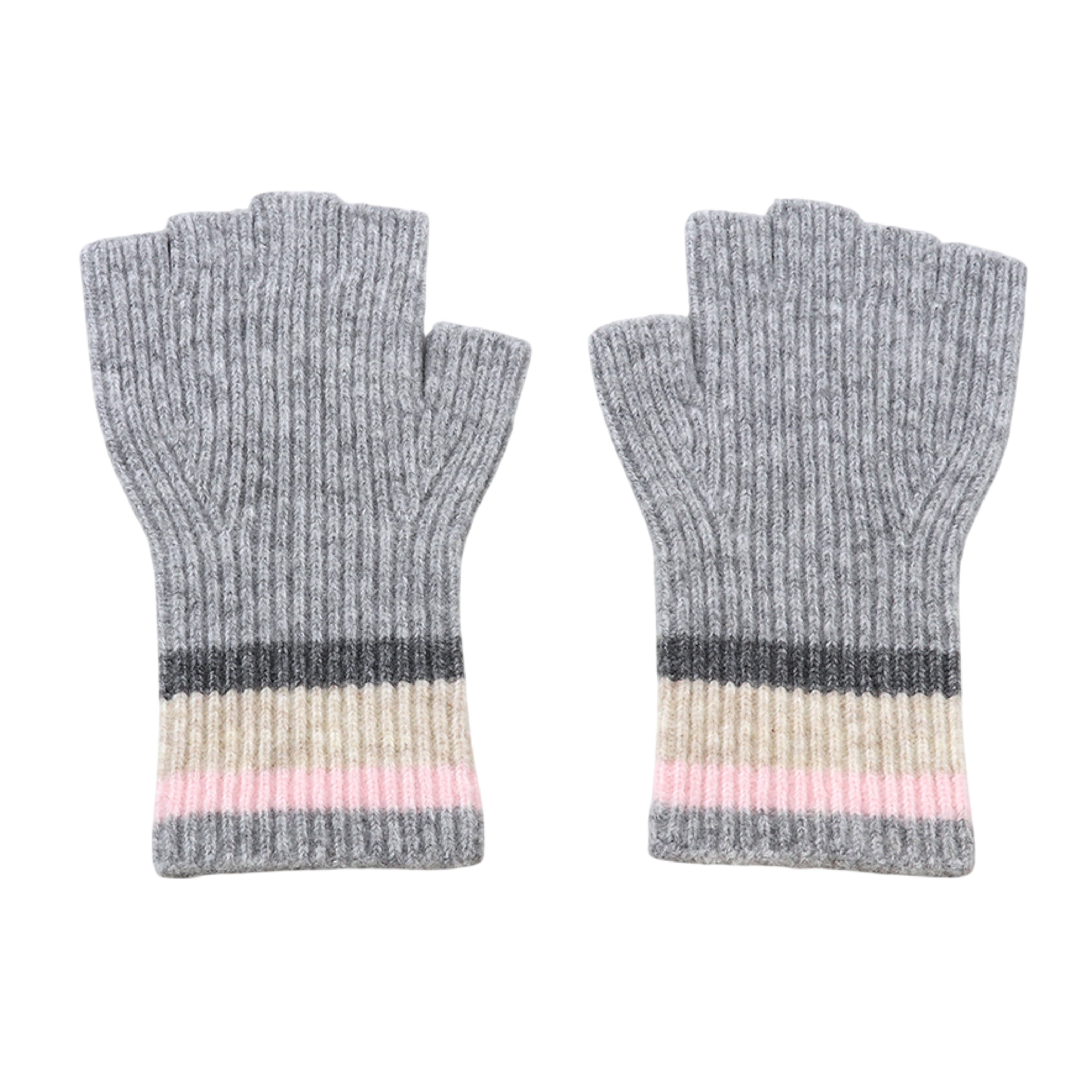 Women's Colour Block Fingerless Gloves | Grey/Pink/Beige