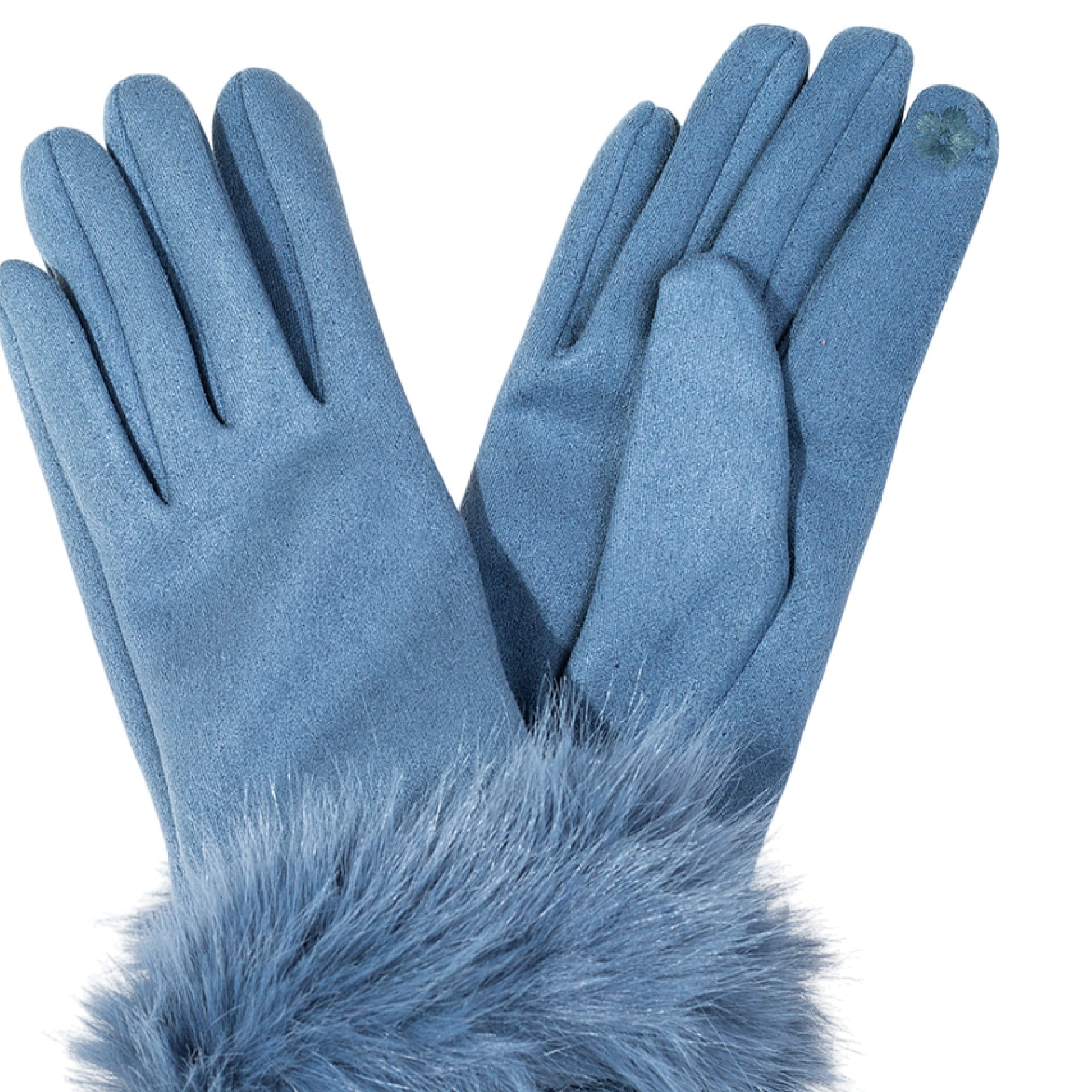 Women's Faux Suede Gloves with Faux Fur Cuffs | China Blue
