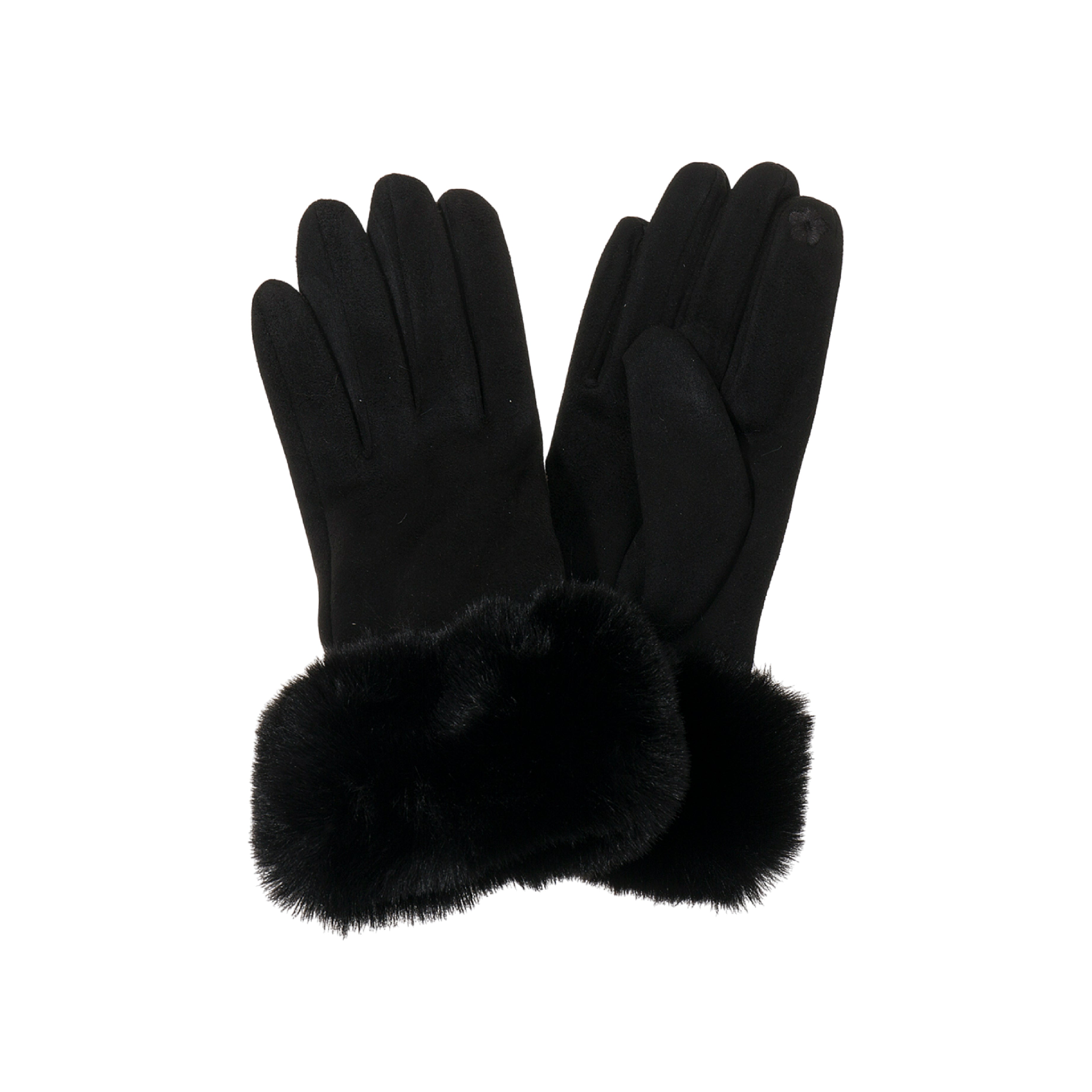 Women's Faux Suede Gloves with Faux Fur Cuffs | Ebony Black