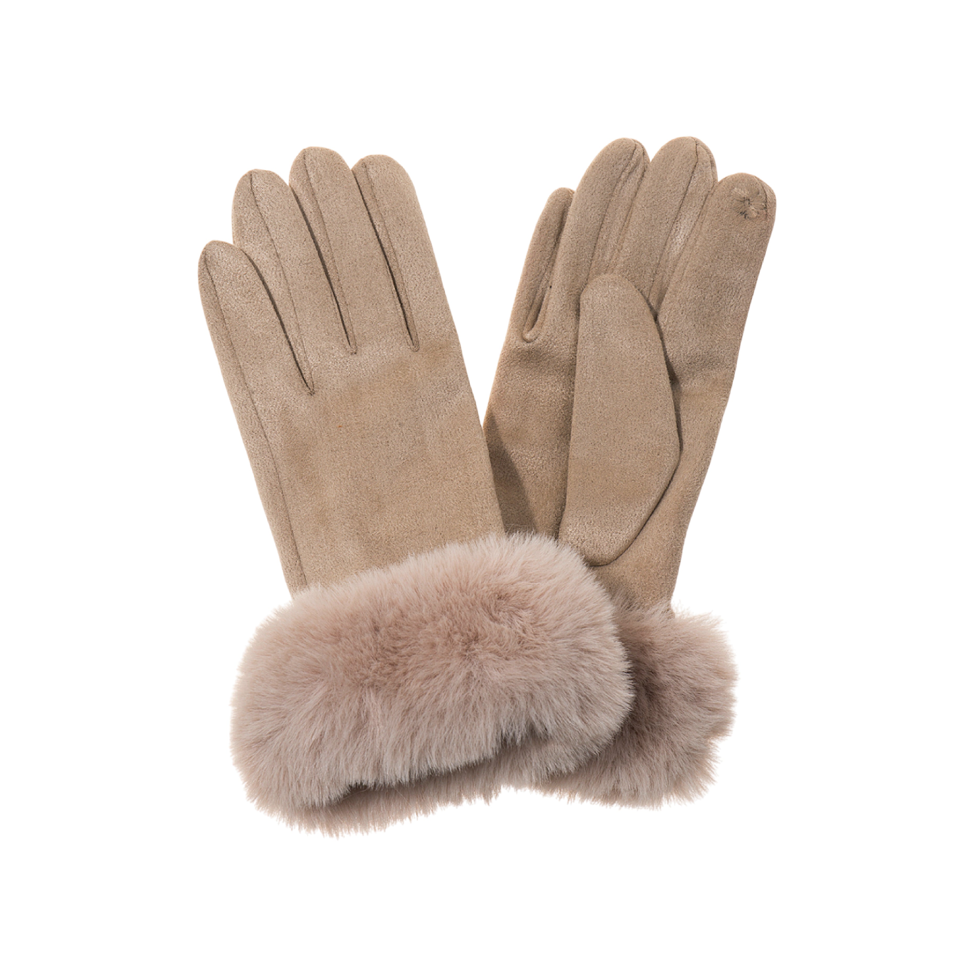 Women's Faux Suede Gloves with Faux Fur Cuffs | Linen