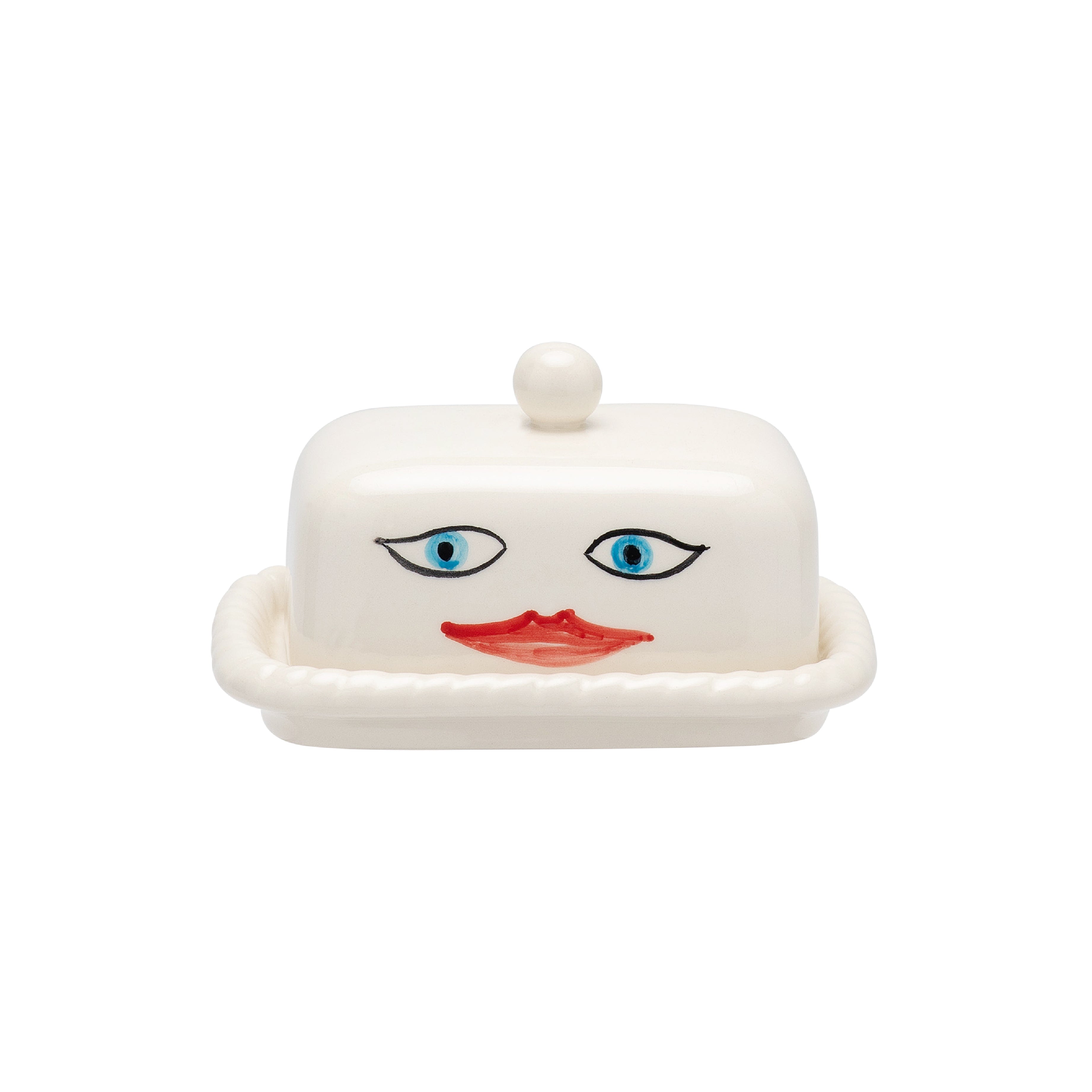 Anna + Nina’s butter dish is double-take worthy by design. Carefully crafted from earthenware coloured white, it comes adorned in a quirky face motif and features a generous interior. Whether stashed in the kitchen or displayed table centre - Anna + Nina’s butter dish is maximal by design.