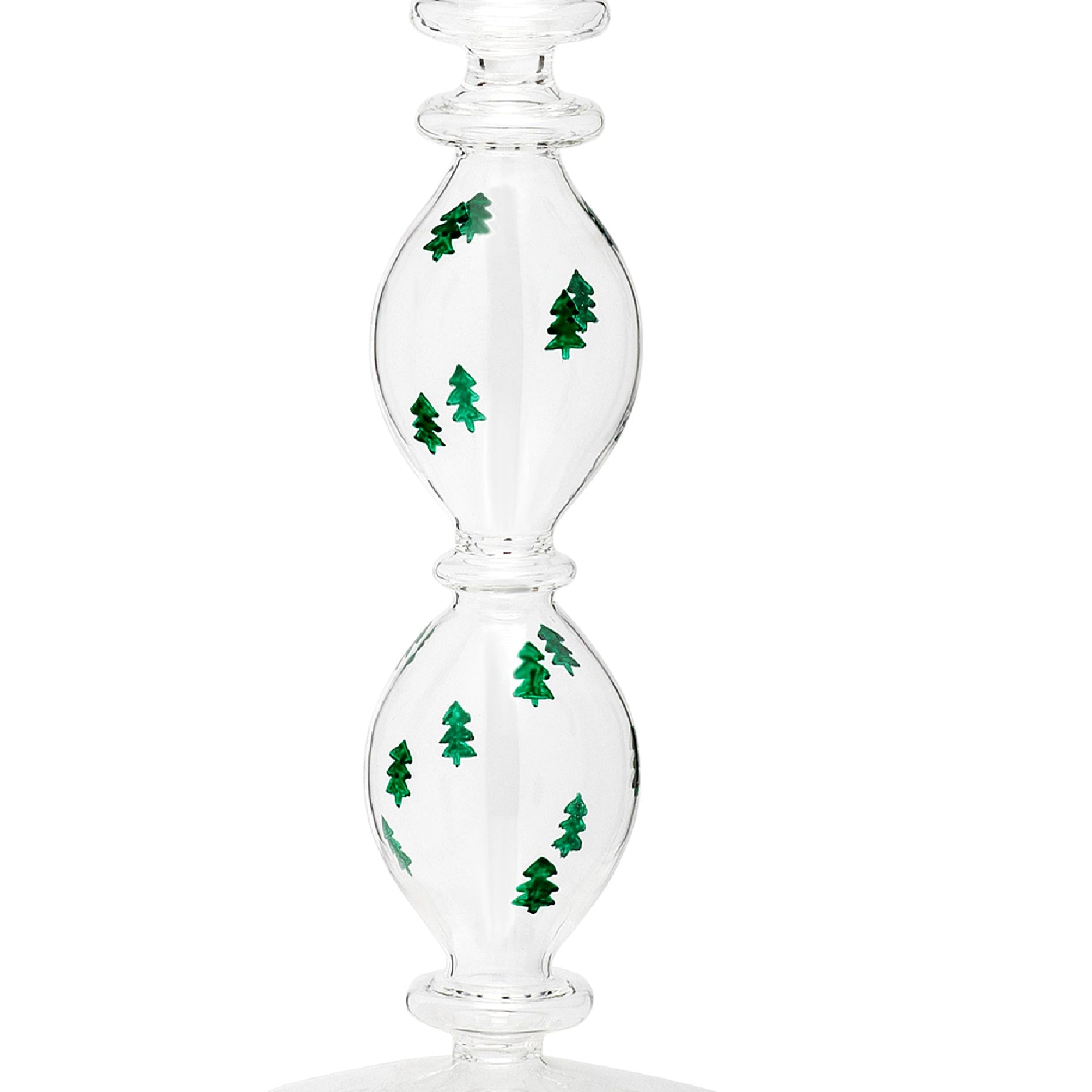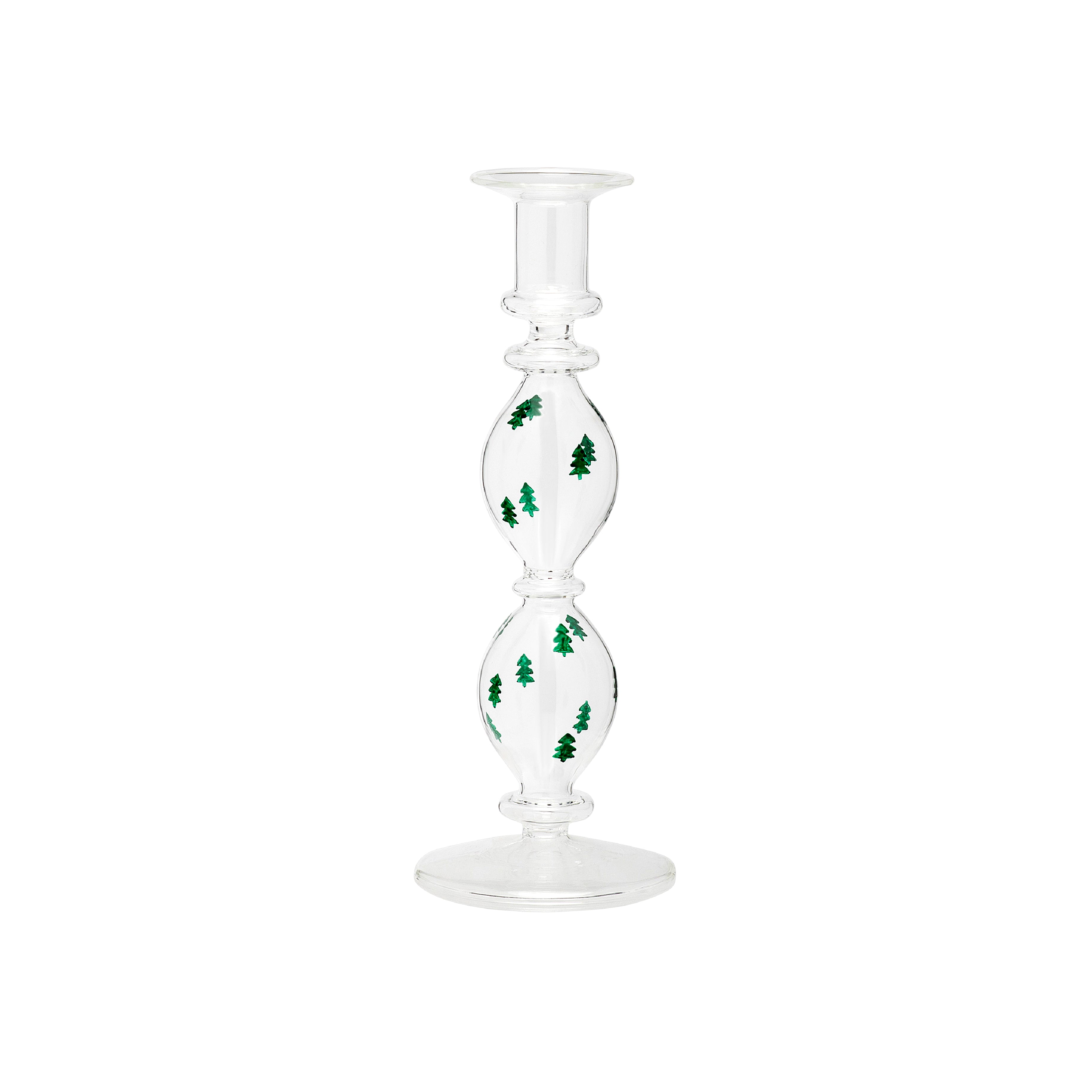 Anna + Nina’s candle holder says it’s Christmas - and not so subtly. Carefully crafted from mouthblown borosilicate glass, it features an ornate bubbled silhouette and comes hand painted with lush green Christmas trees. With or without a taper - Anna + Nina’s candle holder makes a festive statement.