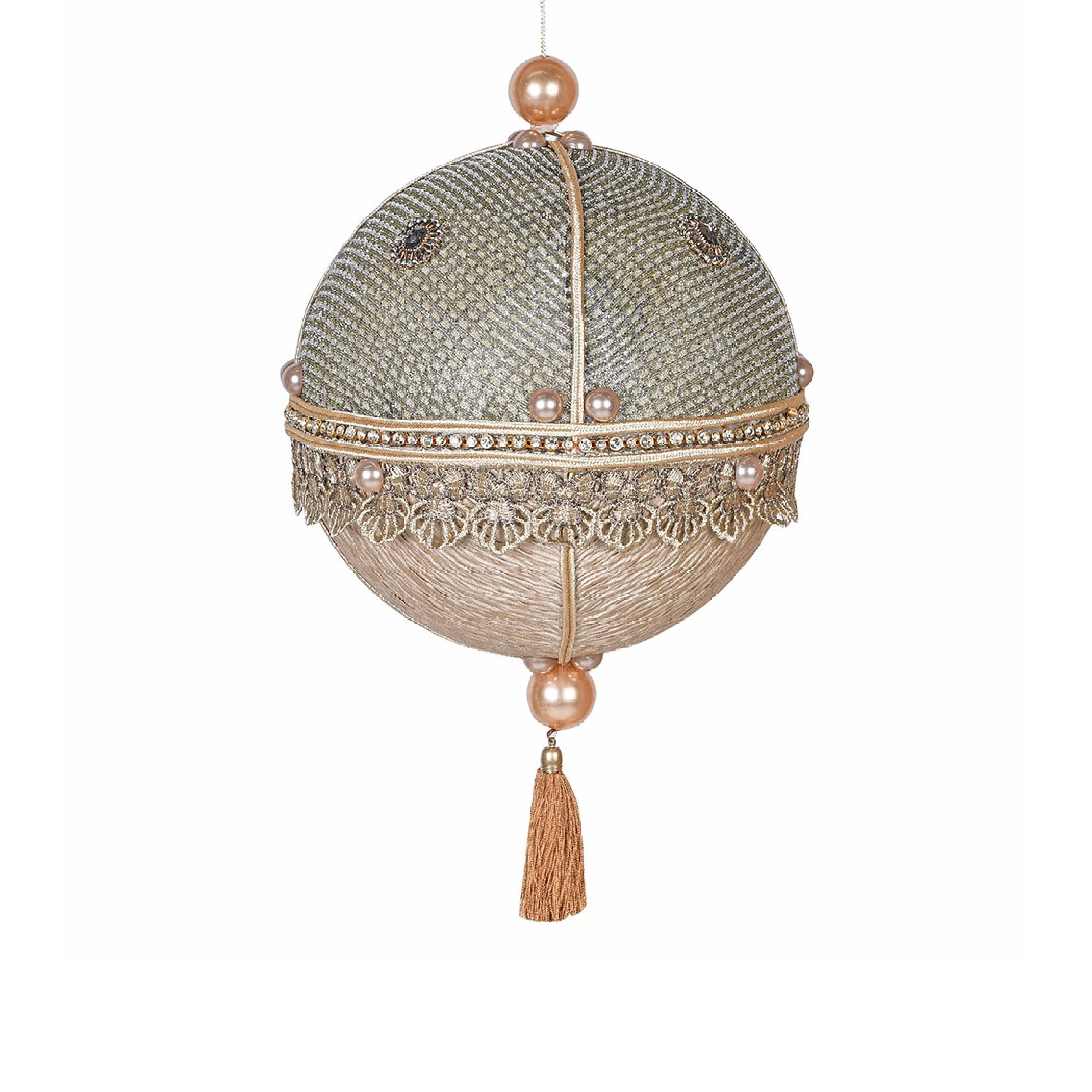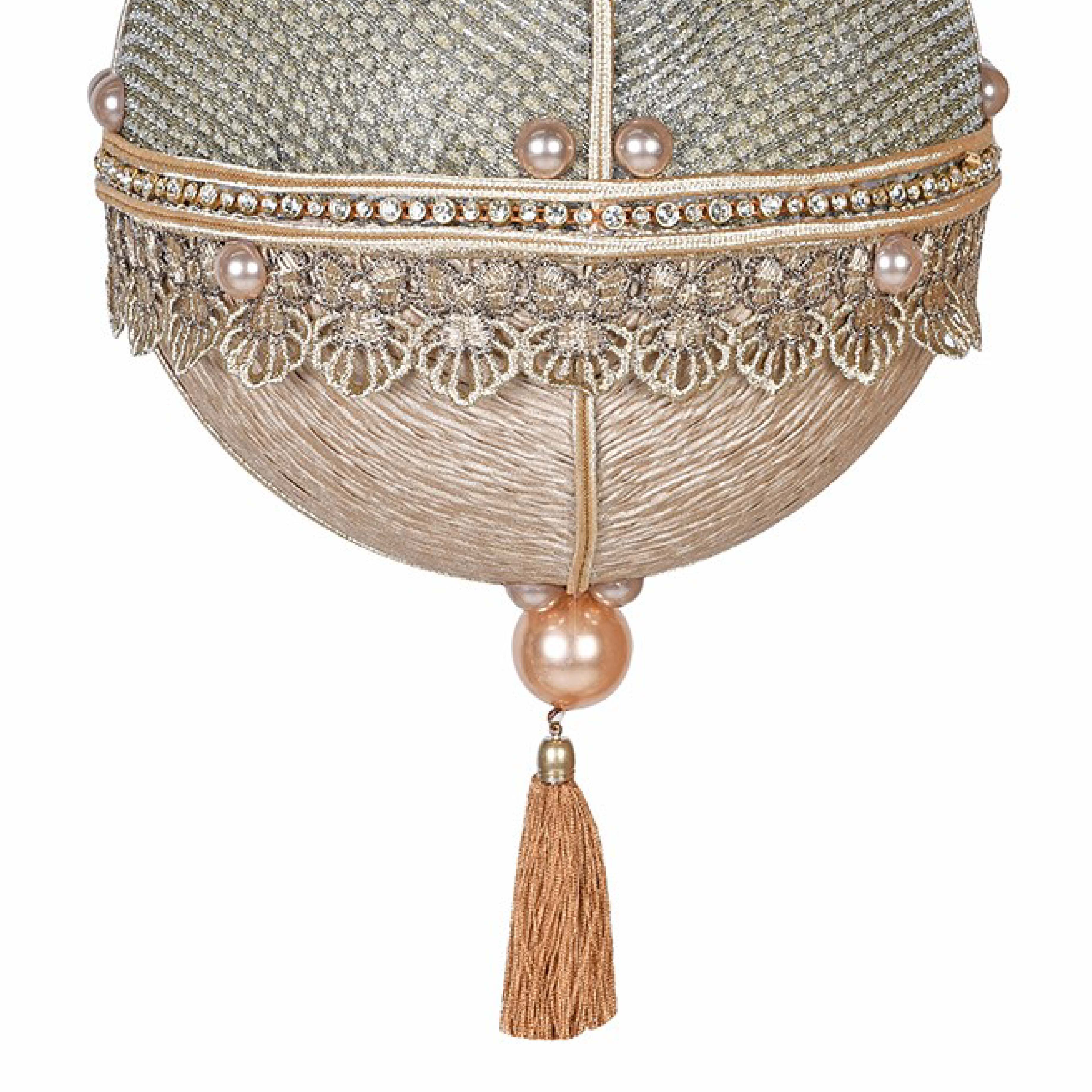 Our baroque-inspired Christmas tree bauble is double-take worthy by design. Coloured brilliant gold, it boasts beautiful ornate details with pearl-style accents, and comes complete with a chic tassel at its bottom. Simply place on tree and marvel as its chic silhouette plays curiously in the light.
