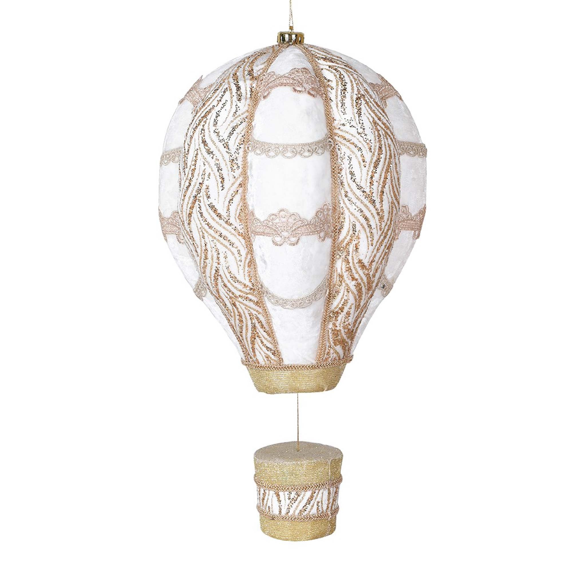 Baroque Hot Air Balloon Hanging Decoration with Glitter Detail | White/Gold | 45cm