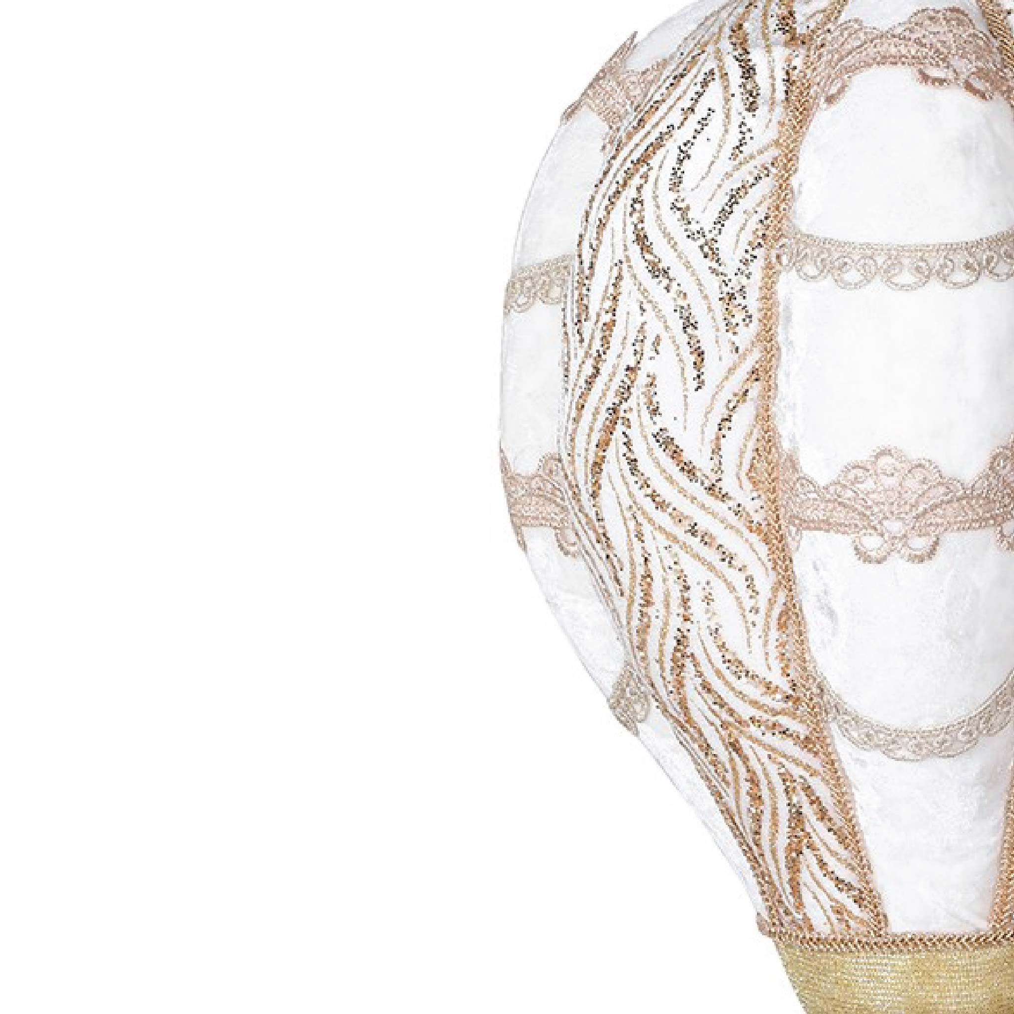 Our luxe hanging decoration is double-take worthy by design. Boasting a brilliant hot air balloon silhouette coloured white and gold, it features beautiful baroque-inspired details and is finished with sparkling glitter that plays curiously in the light. Whether hanging on the ceiling or displayed by the fireplace - our decoration is designed to draw eyes.