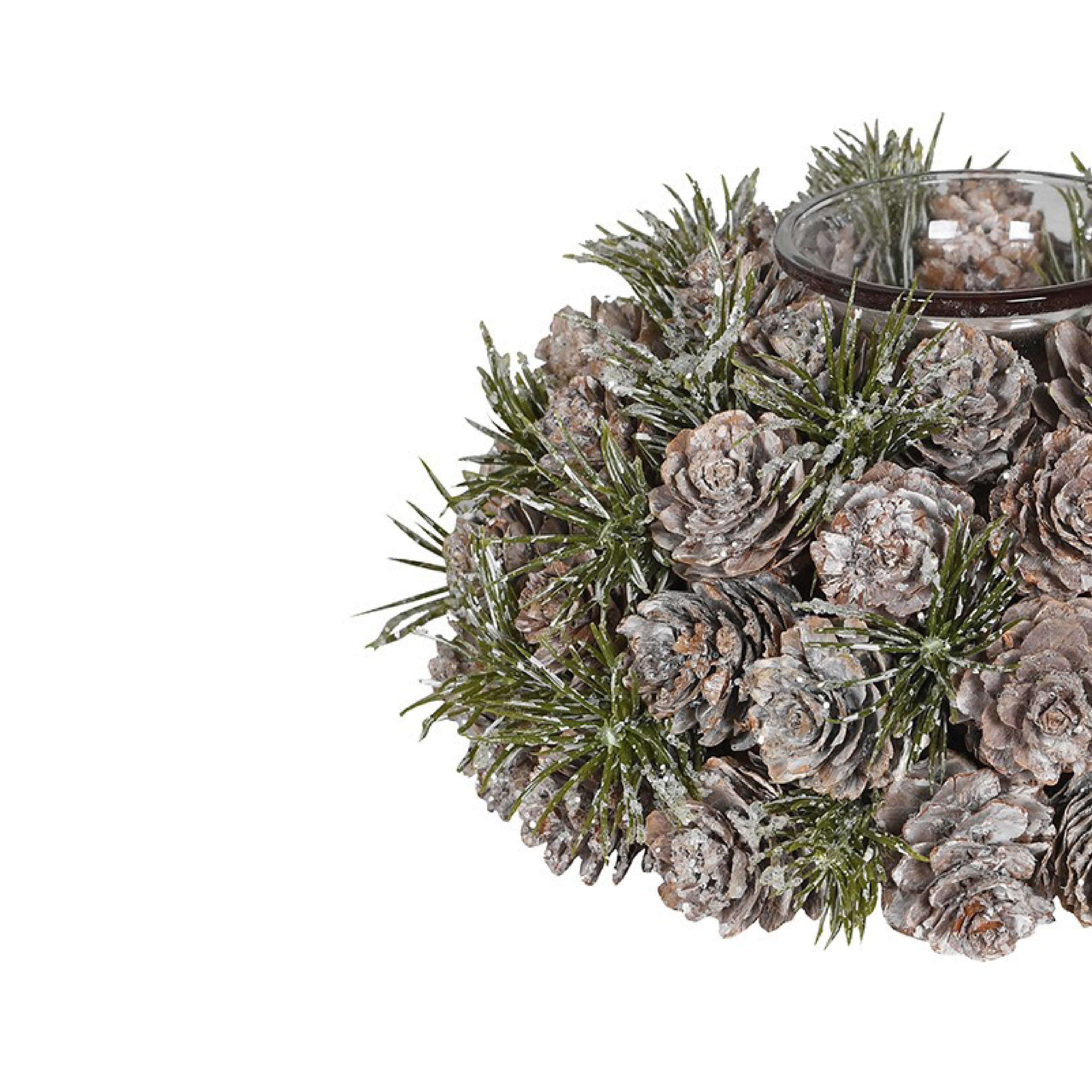 Our winter-inspired candle holder is fundamentally festive by design. Carefully crafted from glass, its vessel comes covered in beautiful clusters of pinecones. Whether featuring by the fireplace or displayed table centre; with or without flame - our candle holder makes a statement.
