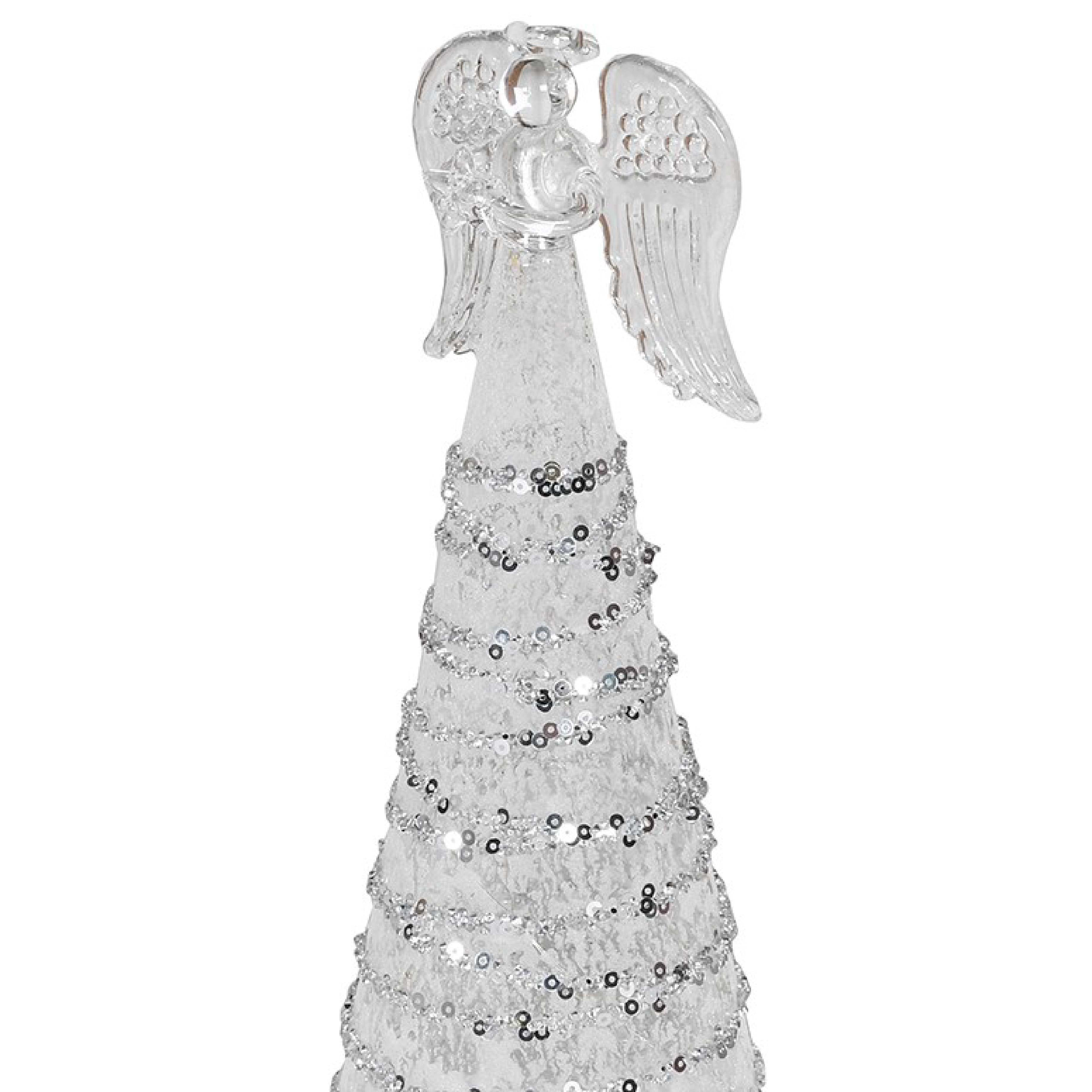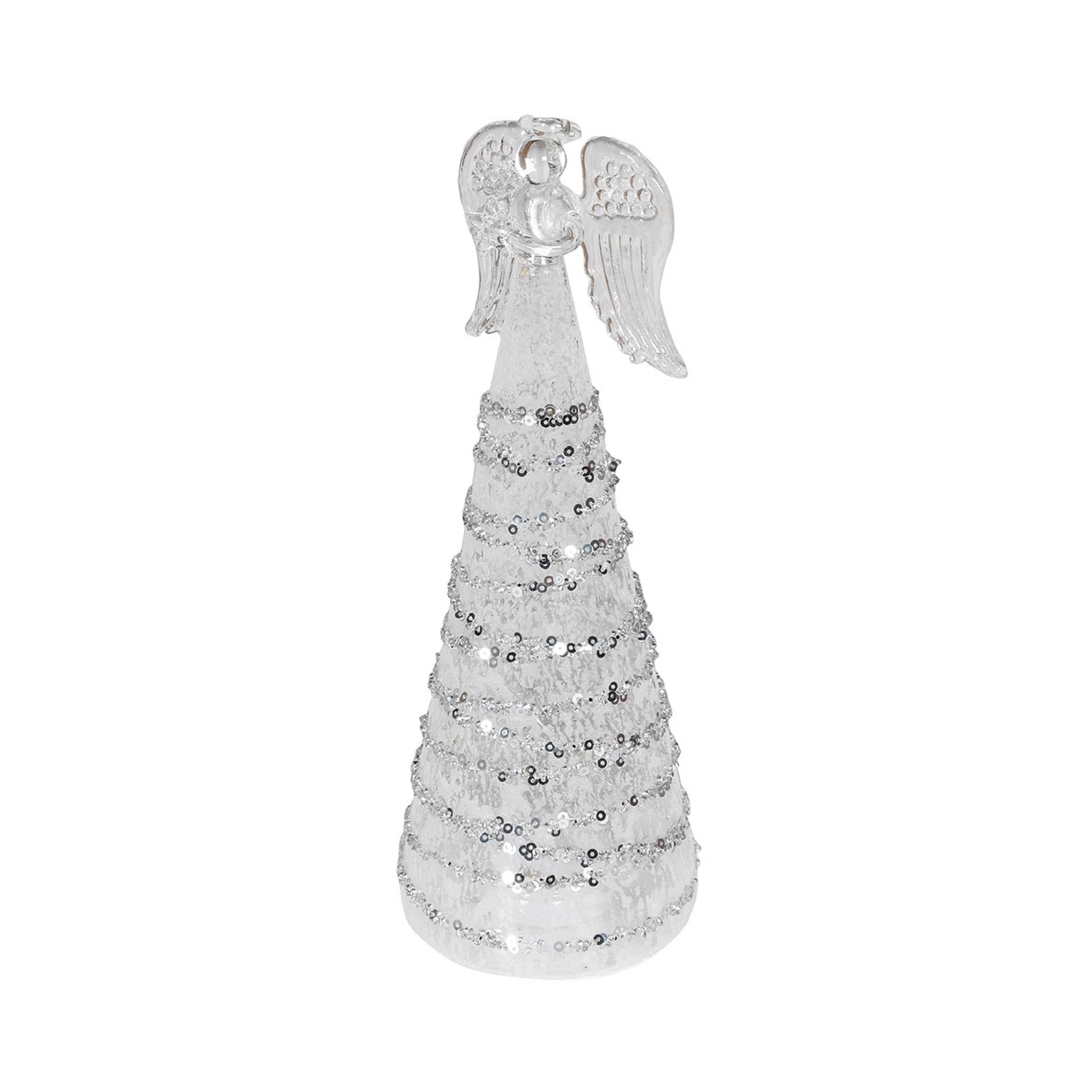 LED Angel Figurine with Glitter Detail | Silver | 23cm