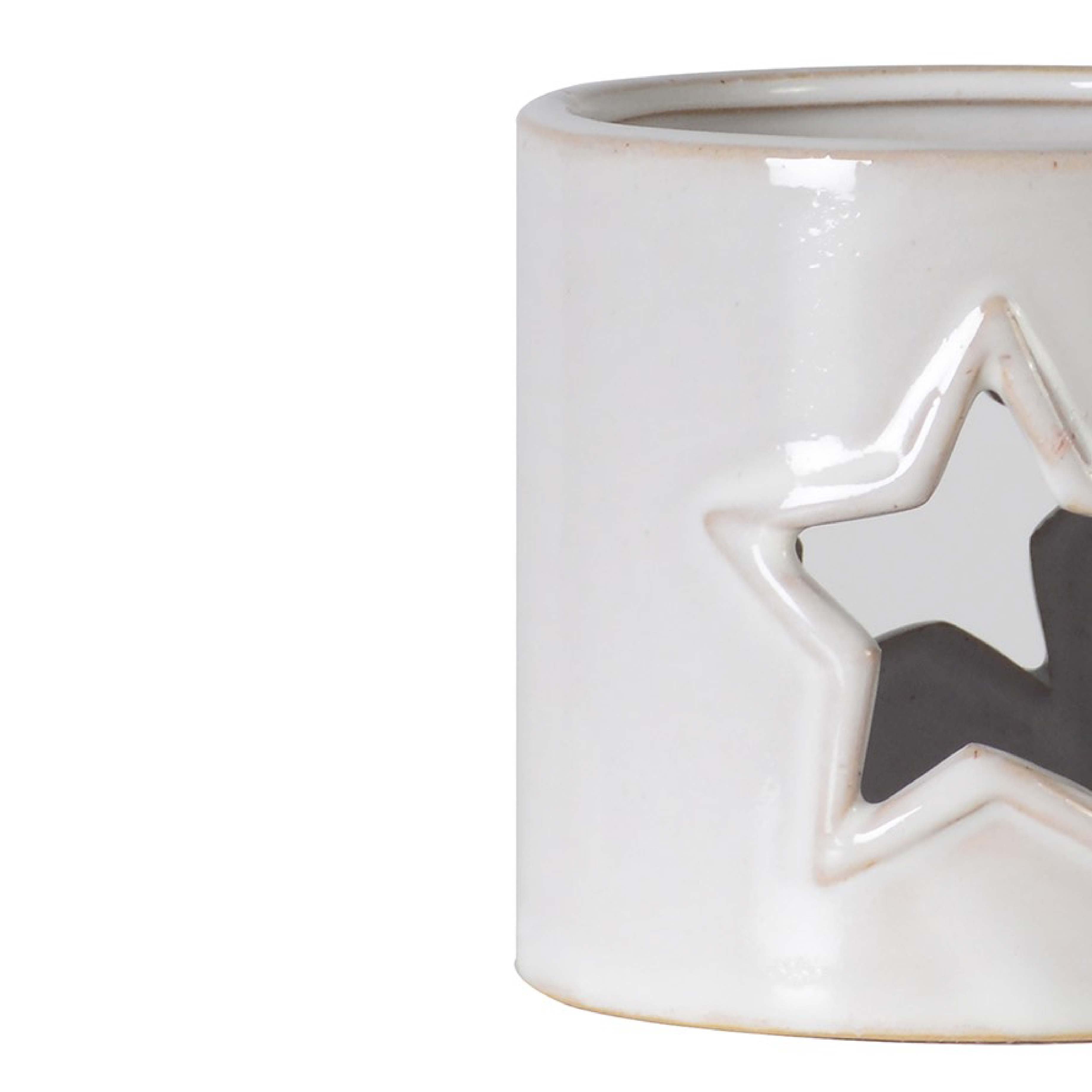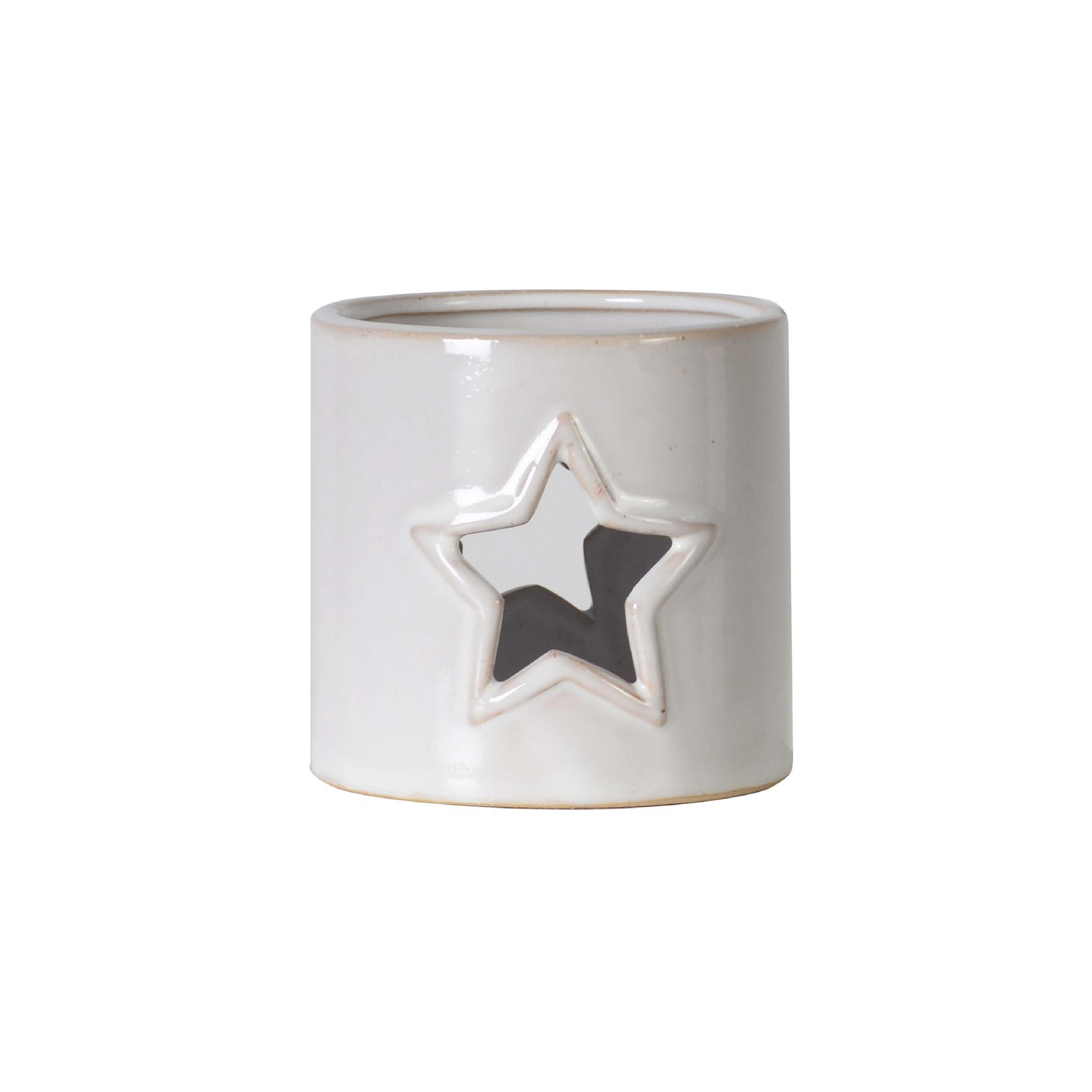Rustic Tealight Holder with Star Cut-Out | Whitewash Porcelain | 8cm