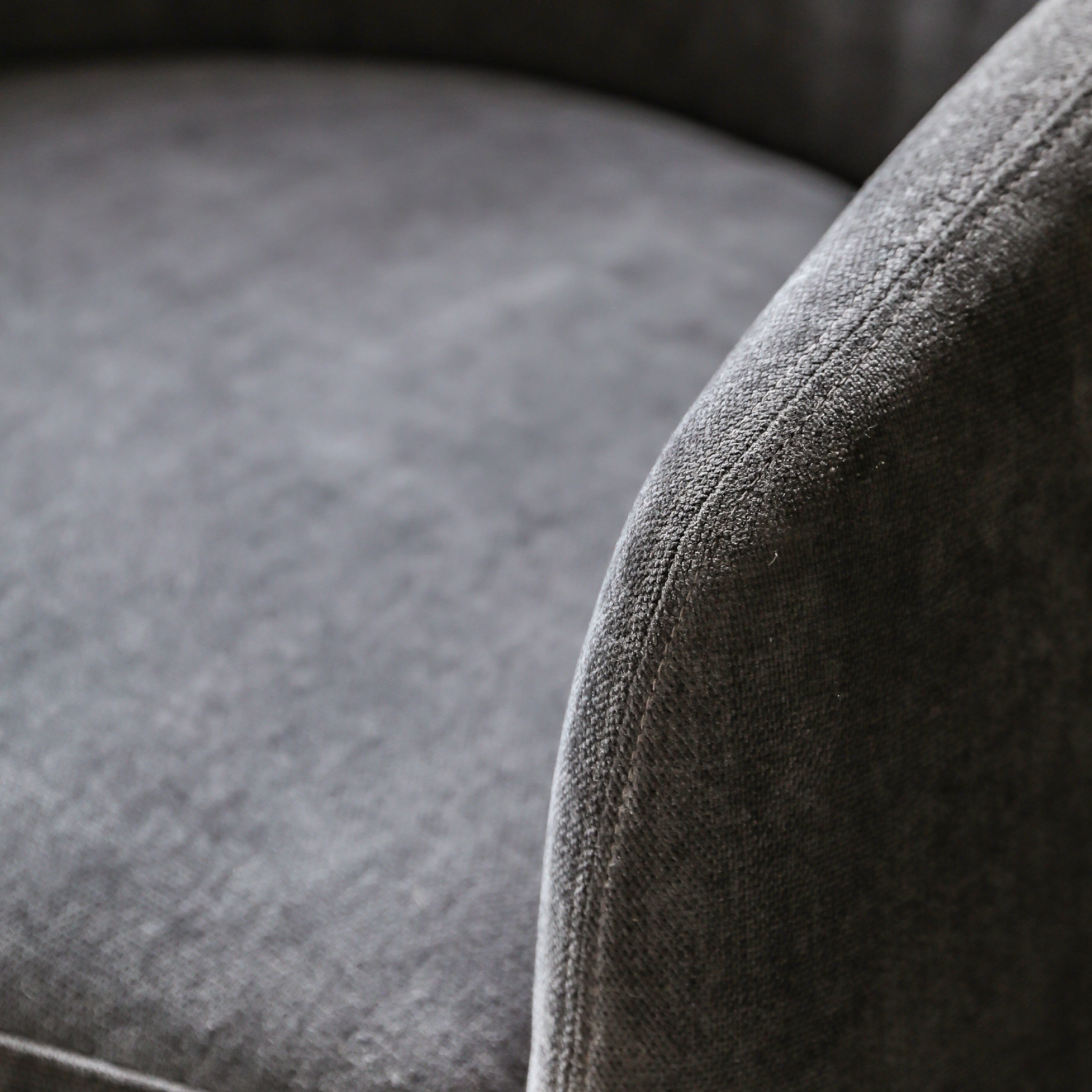 Inspired by retro design this armchair is a stand out addition to any room. Upholstered in grey the smooth curved back narrows down to a curved back base with double stepped feature at the front, the vintage influence is clear, making it the perfect fit for both modern and eclectic inspired interiors.