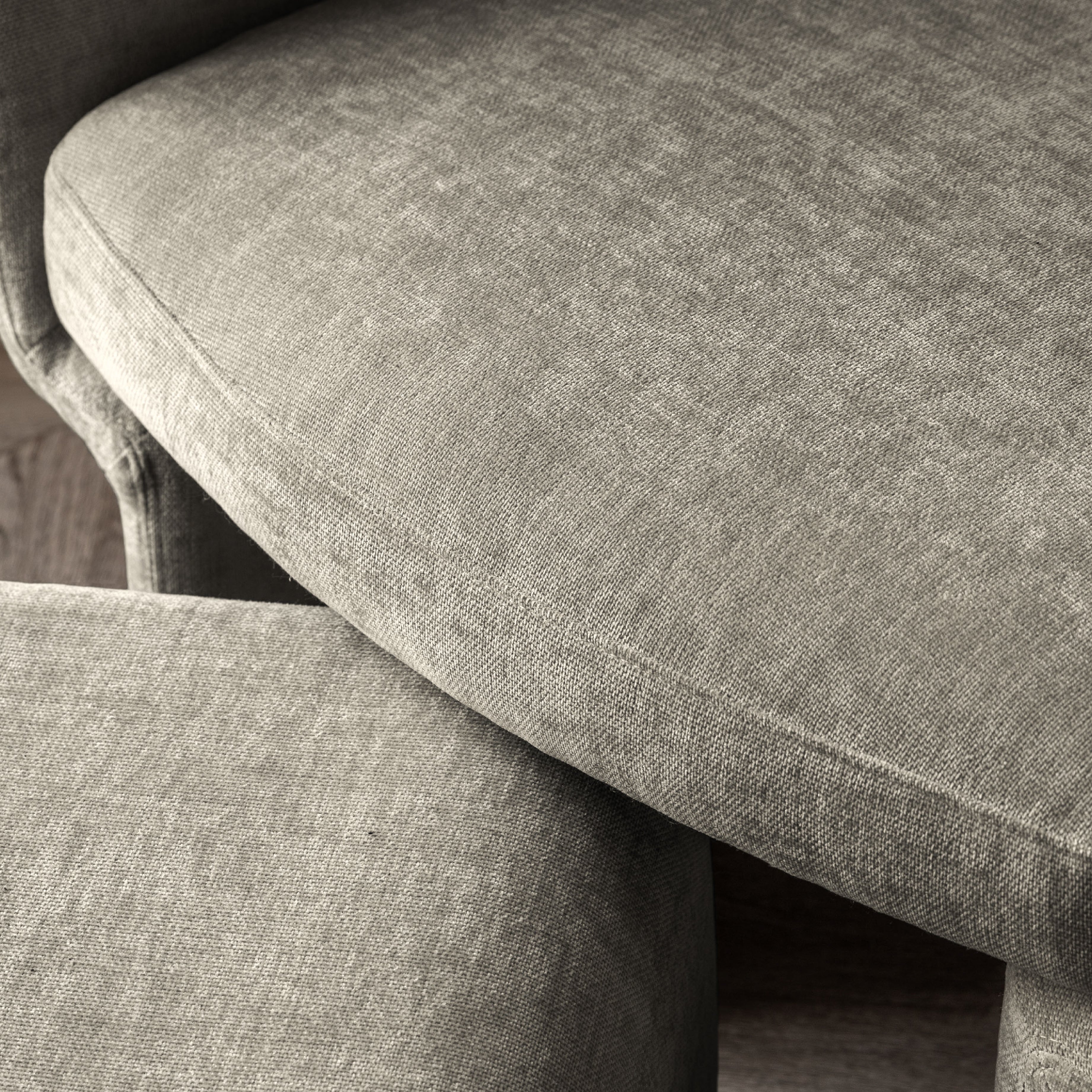 Inspired by retro design this armchair is a stand out addition to any room. Upholstered in sage, the smooth curved back narrows down to a curved back base with double stepped feature at the front, the vintage influence is clear, making it the perfect fit for both modern and eclectic inspired interiors.
