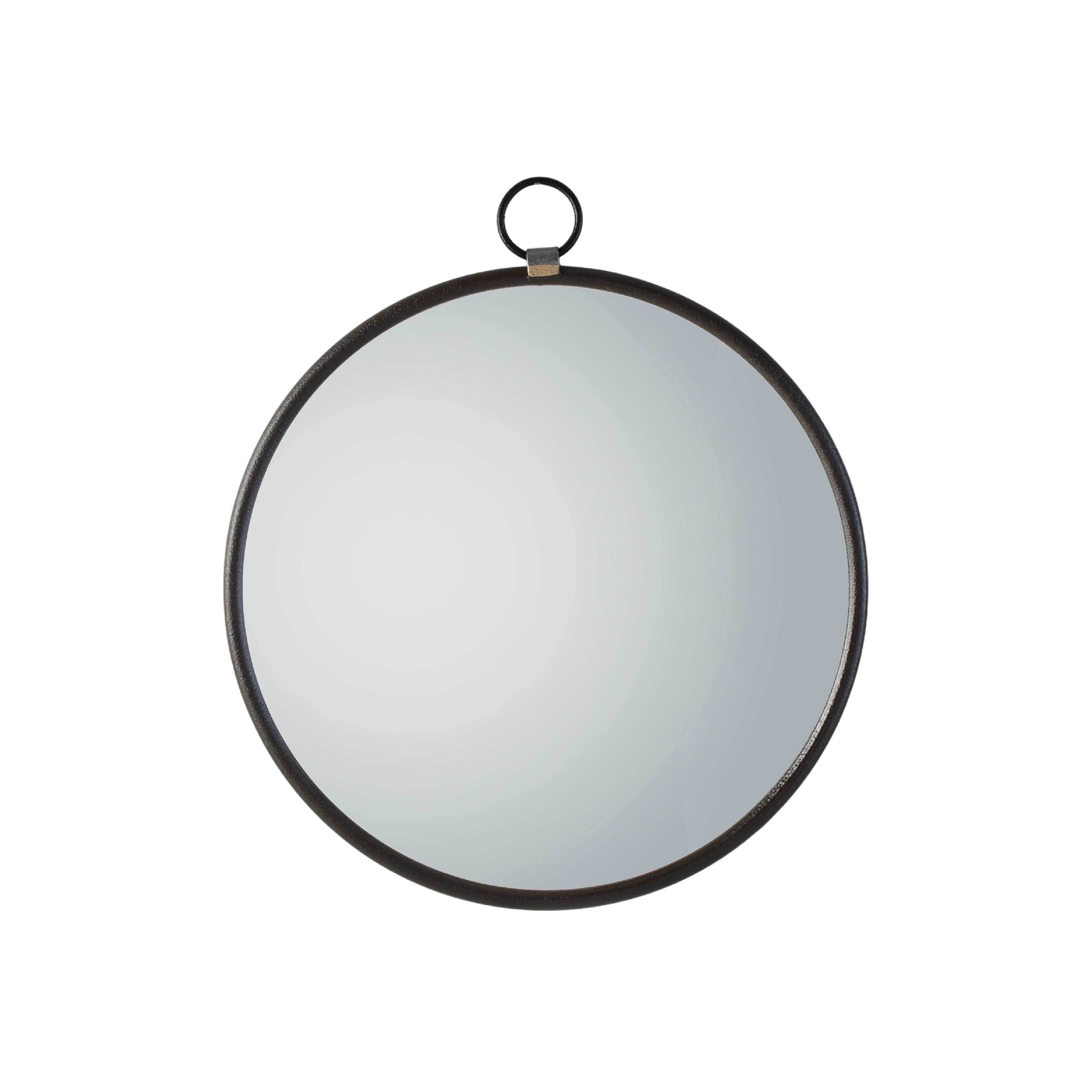 Simple yet stylish mirror with an industrial feel, featuring a black metal surround and 'hanging' loop, joined to the main frame by contrasting gold coloured metal to add a subtle detail.