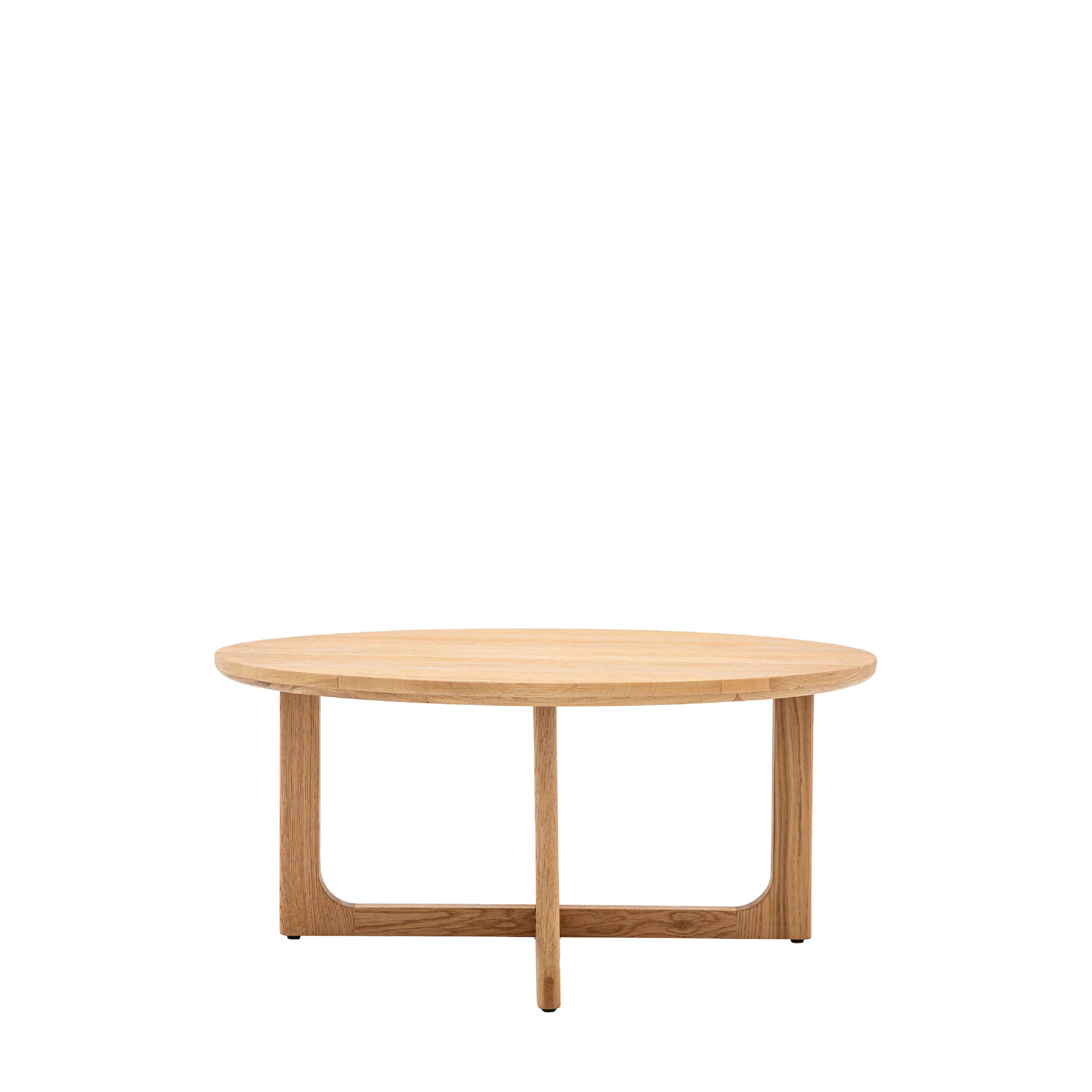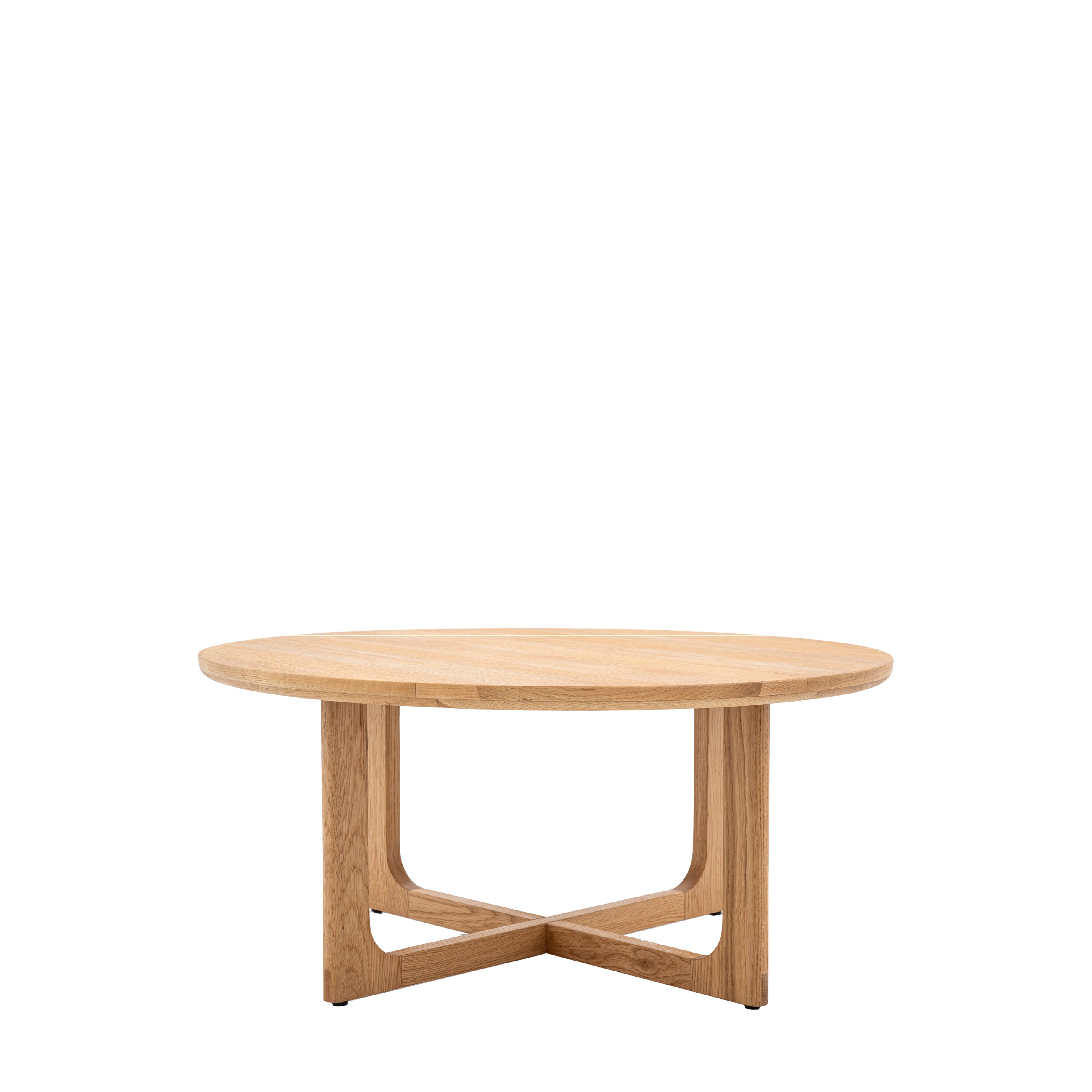 Crafted from the finest oak and structural oak veneers where practical, this beautiful coffee table offers elegant design, with its simple round top and beautifully shaped underframe. The wood has a lovely natural finish.