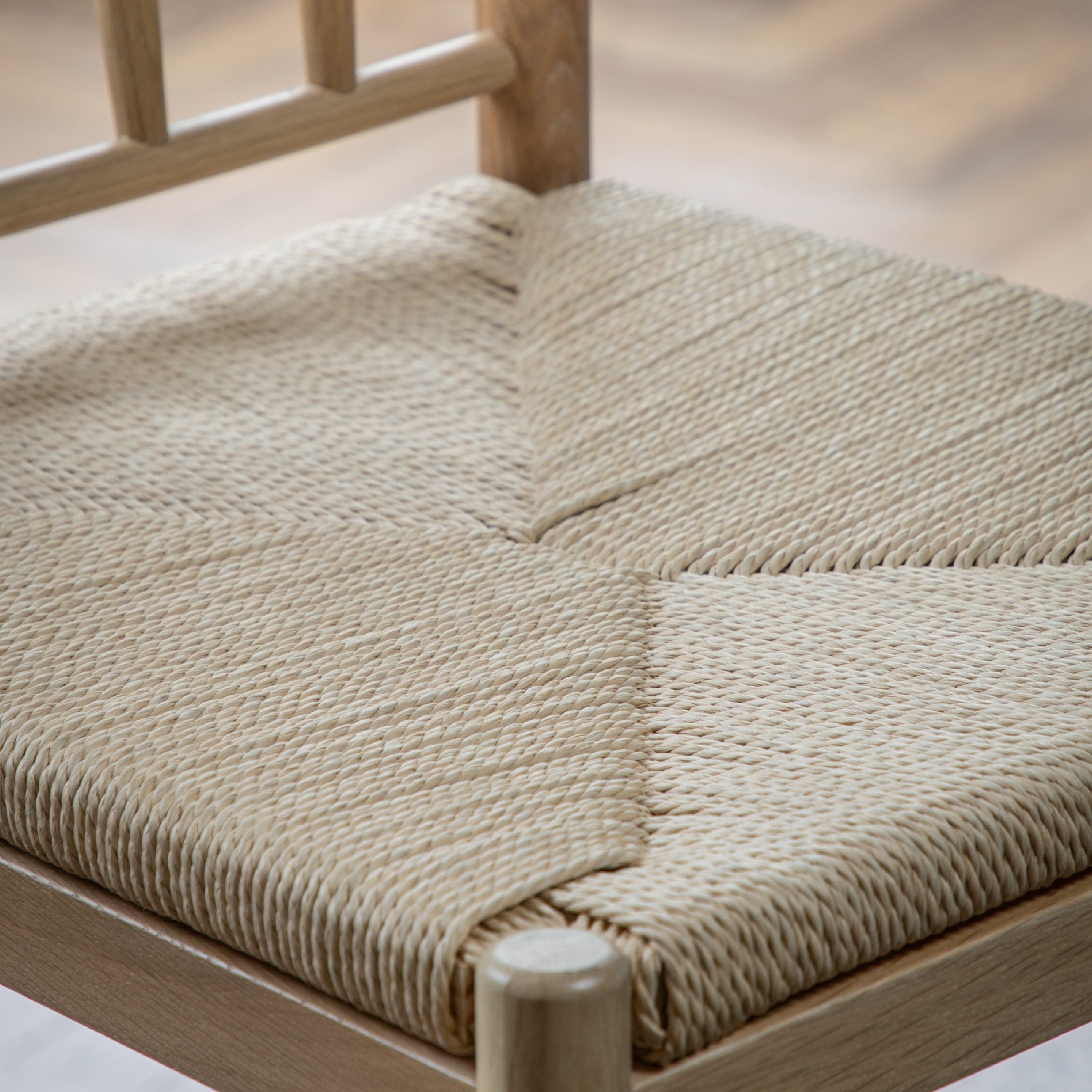 Set of 2 bar stools perfect for enjoying that morning coffee in your cosy kitchen. In light solid oak with a hand woven rope seat, these bar stools are a contemporary take on a rustic classic. Due to the handmade nature of this product colour variations may be present.