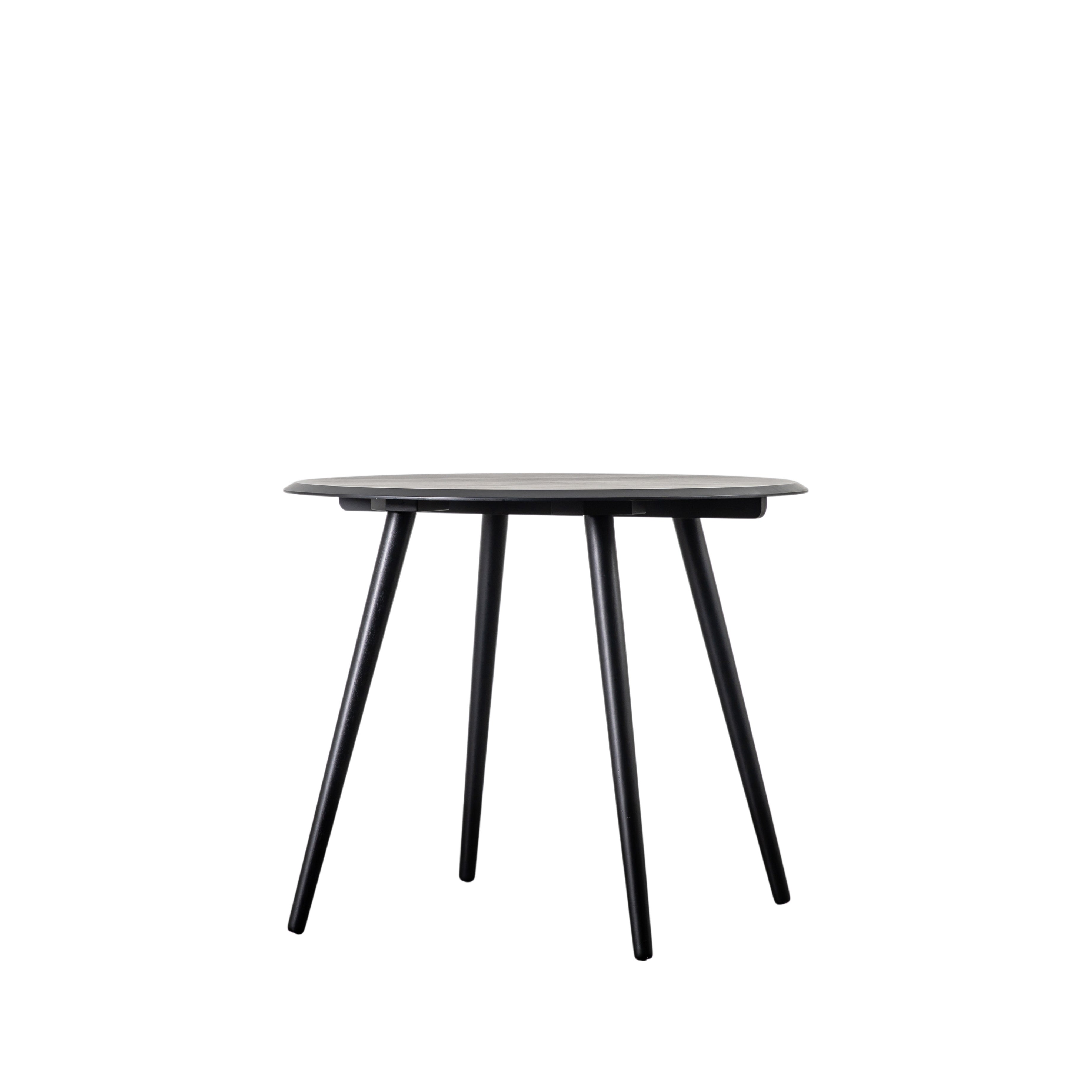Offering a modern twist on mid-century style, this lovely table features solid timber legs in a black finish paired with a black oak veneer top.