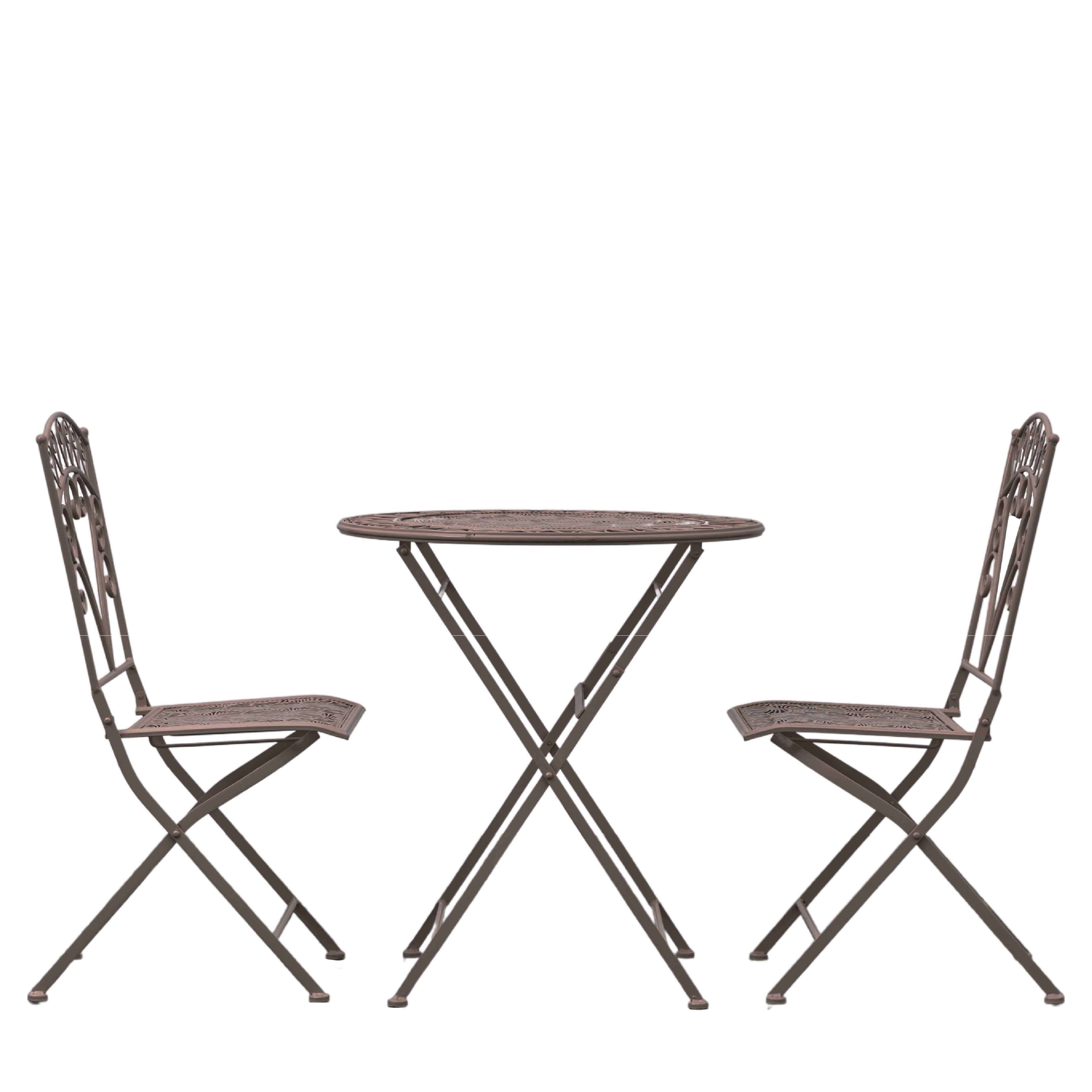 Gallery’s bistro set of the Brindisi Collection is modish in miniature. Crafted from iron coloured black, it features a set of two chairs with beautiful nature-inspired motifs, and a matching table with a floral top. Easily foldable for when not in use - Gallery’s versatile bistro set renders alfresco living aesthetic.
