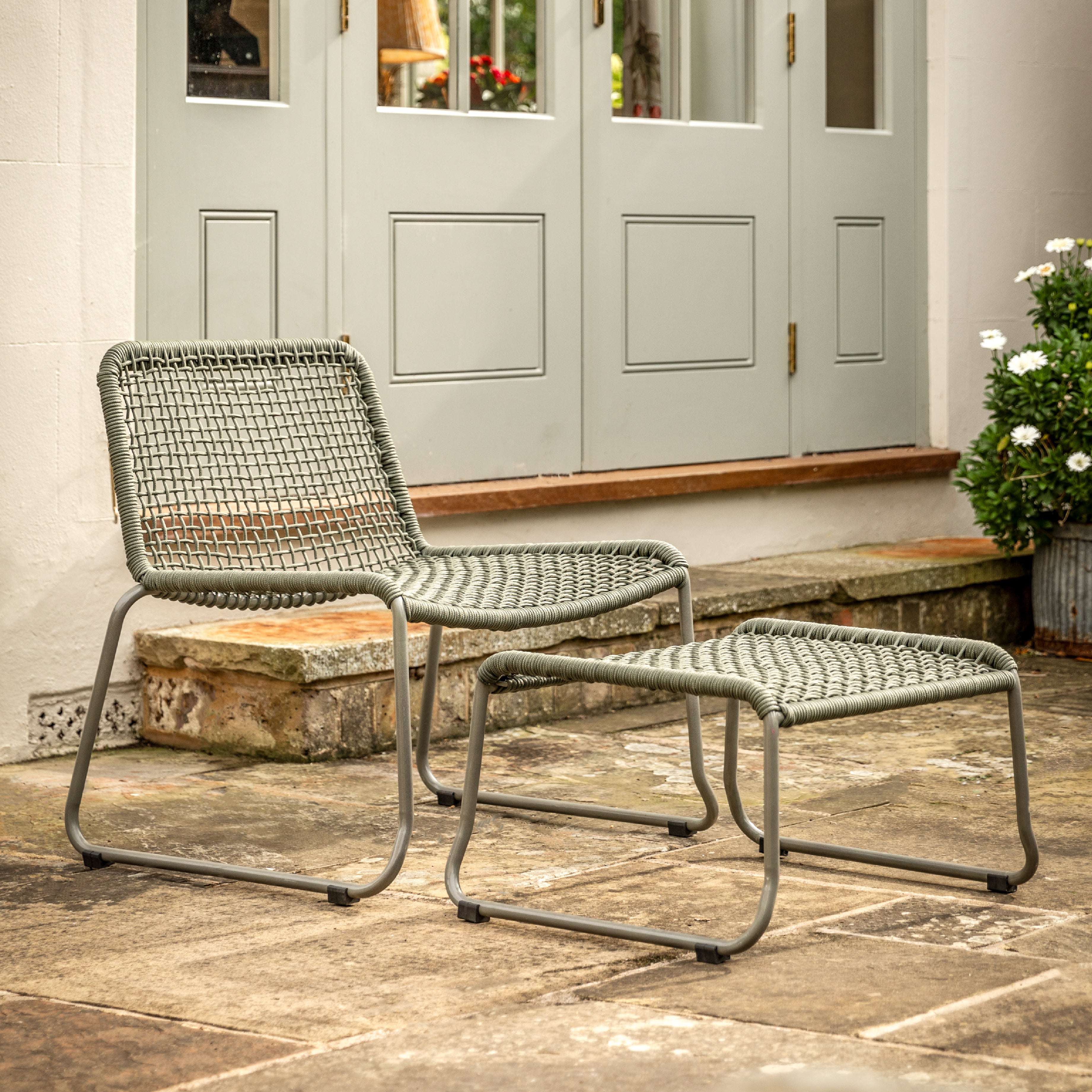 Gallery’s outdoor lounge set is quintessentially contemporary by design. Crafted from steel coloured green, their set features a lounge chair and footstool - each boasting modern woven rope details in turn. Whether reading or entertaining; Gallery’s outdoor lounge set is made for indulging.