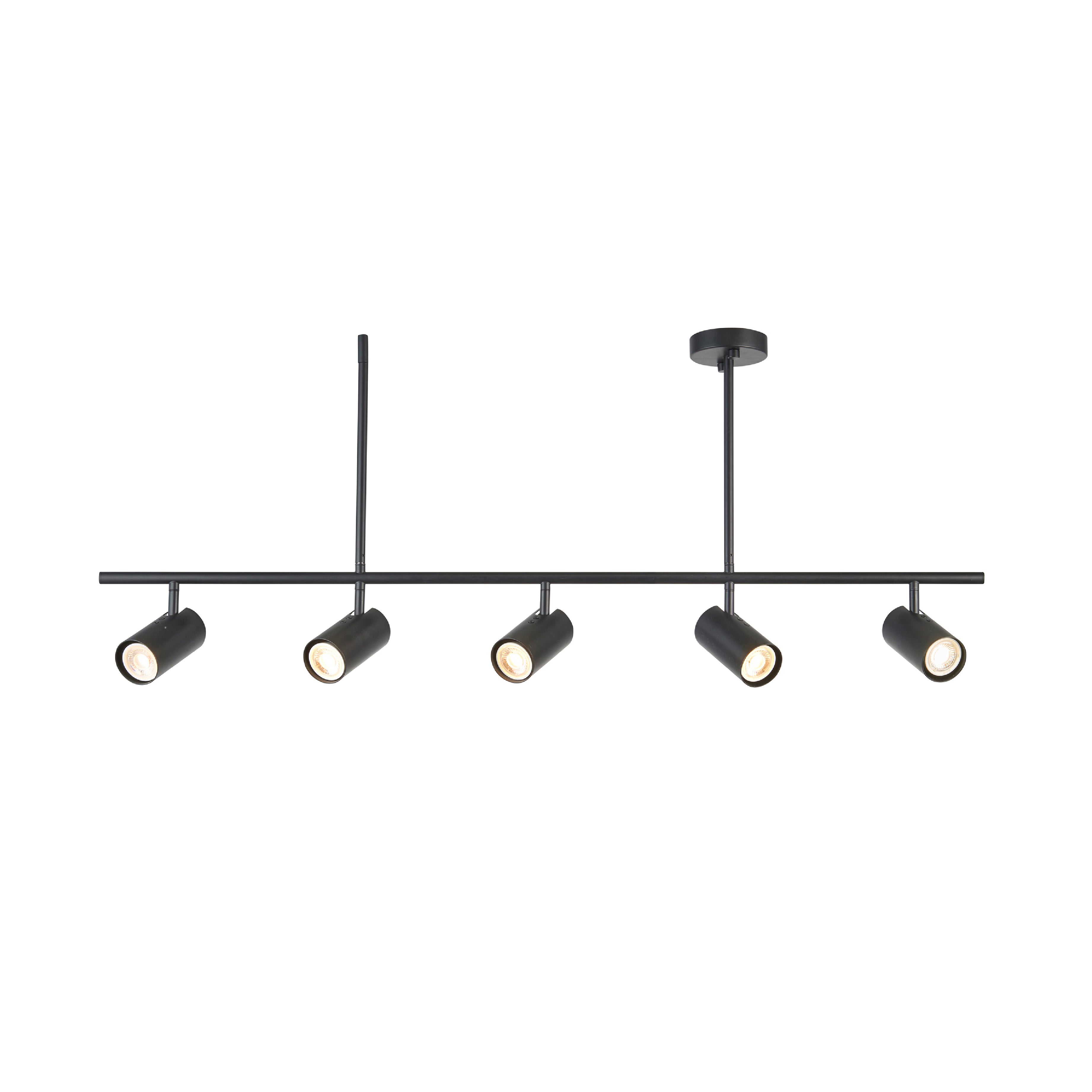 Five light spotlight house on bold matt black frame, creating a strong clean silhouette and directional lighting.