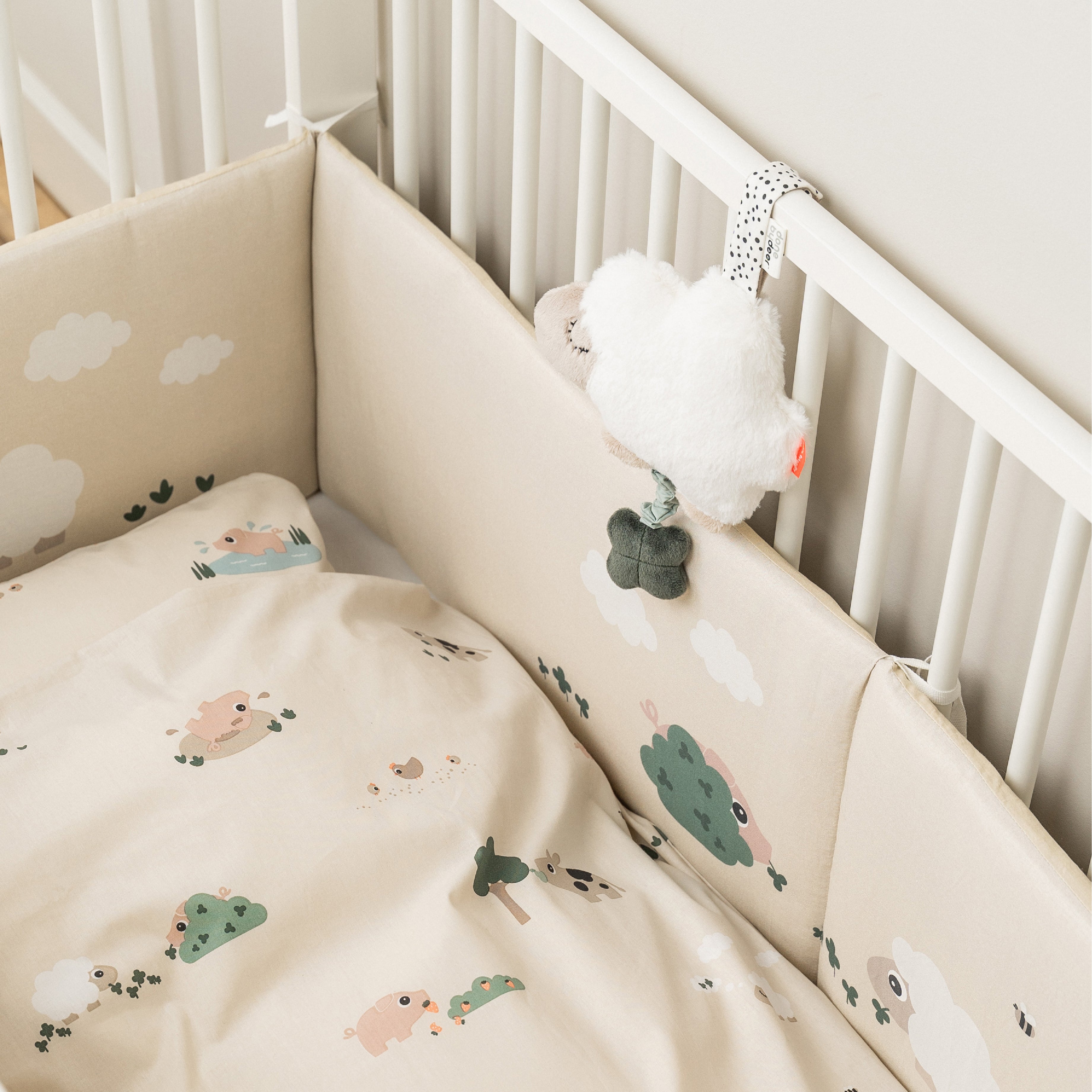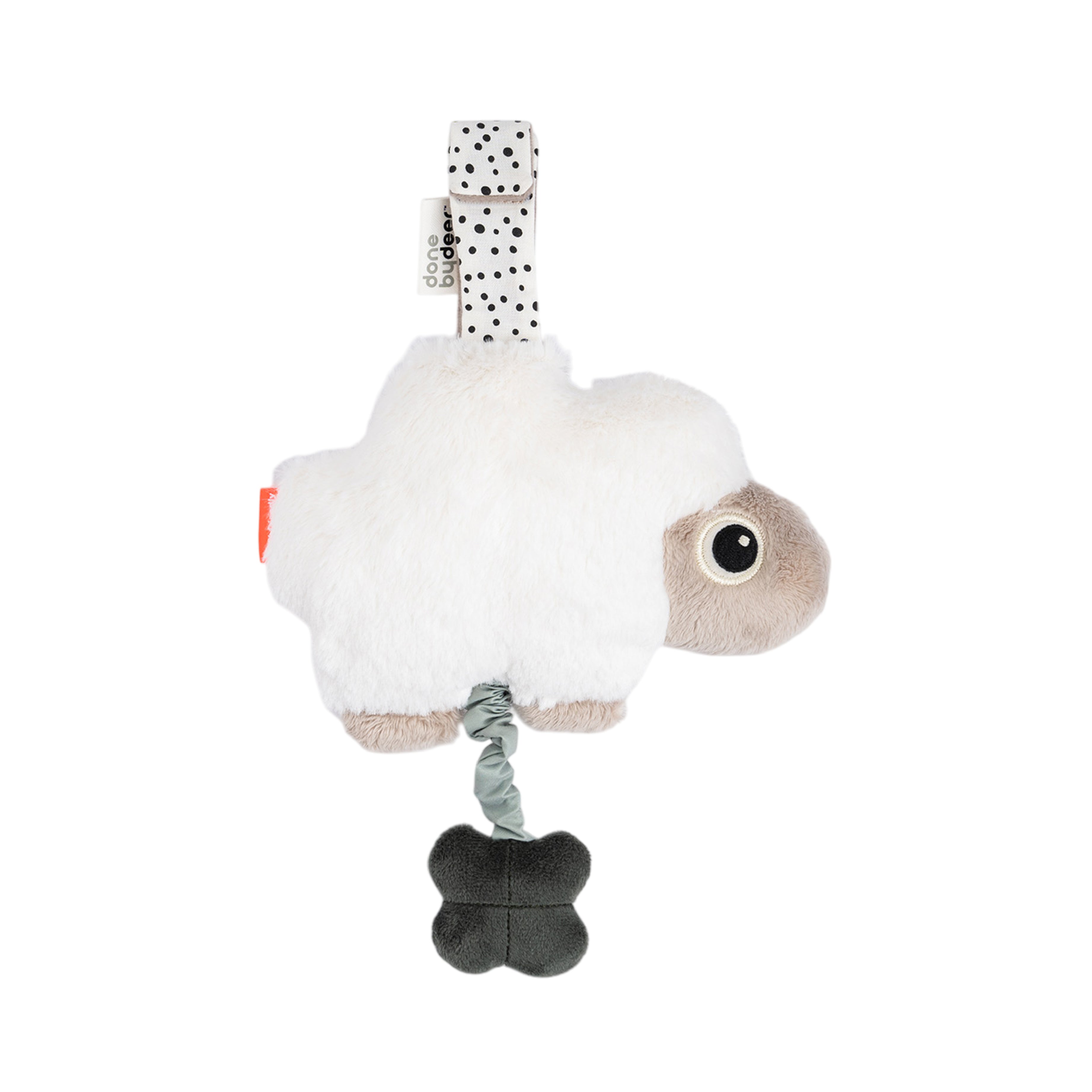 Done by Deer’s musical toy is designed to soothe. Crafted from plush polyester, sleepy Sheepy holds a crinkly clover - simply pull on it to play ‘Welcome to our World of Toys’. Complete with a polka dot velcro strap for no-fuss attachment - Done by Deer’s musical toy is an essential for nap times.