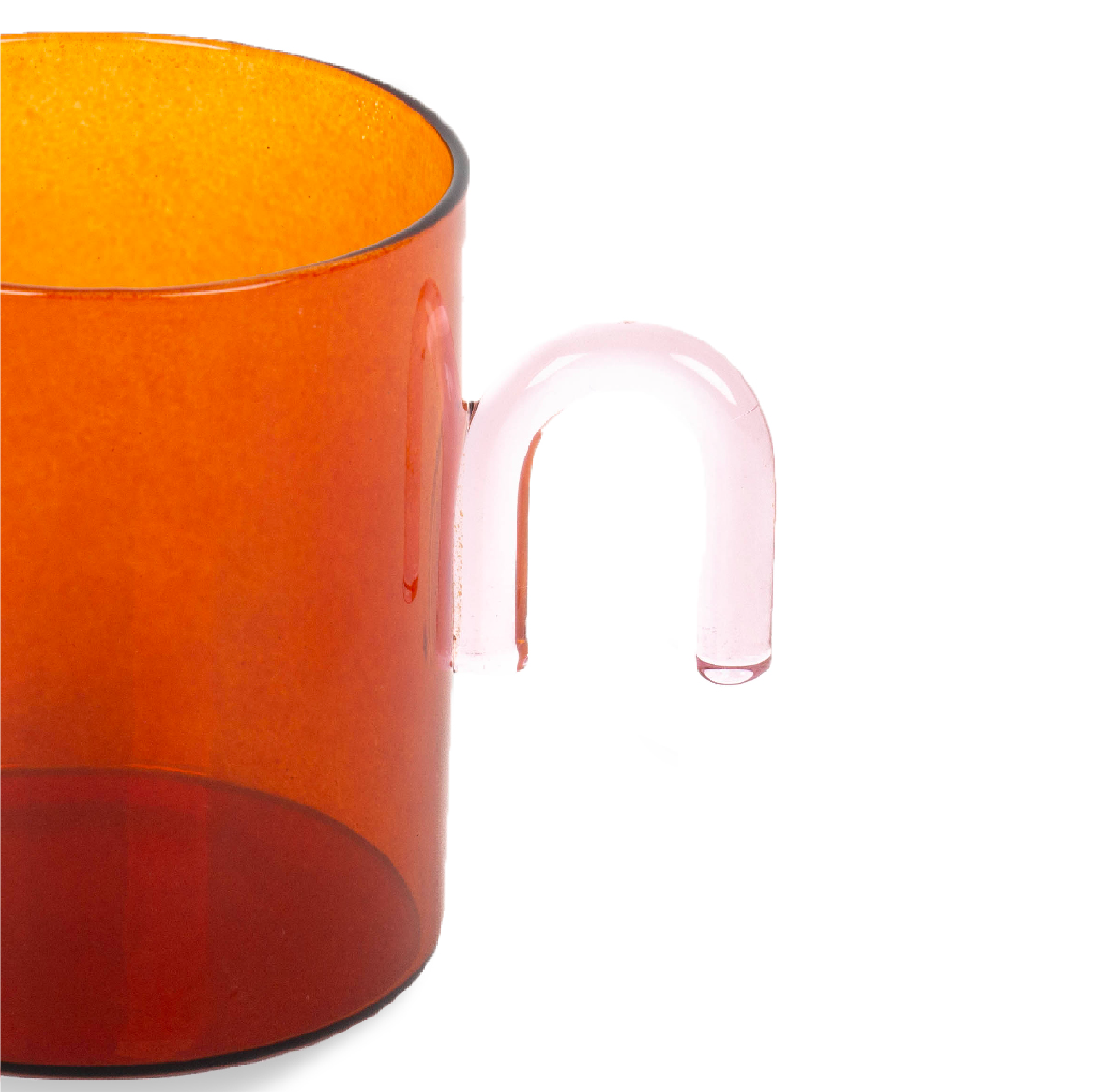 Helio Ferretti’s mug is crafted from premium glass coloured amber and pink. Quintessentially retro, it features a curious arch handle and generous interior. Whether filled with tea, coffee or something a bit stronger - Helio’s nostalgic glassware is the go-to for quirky kitchens. Available in additional colourways.