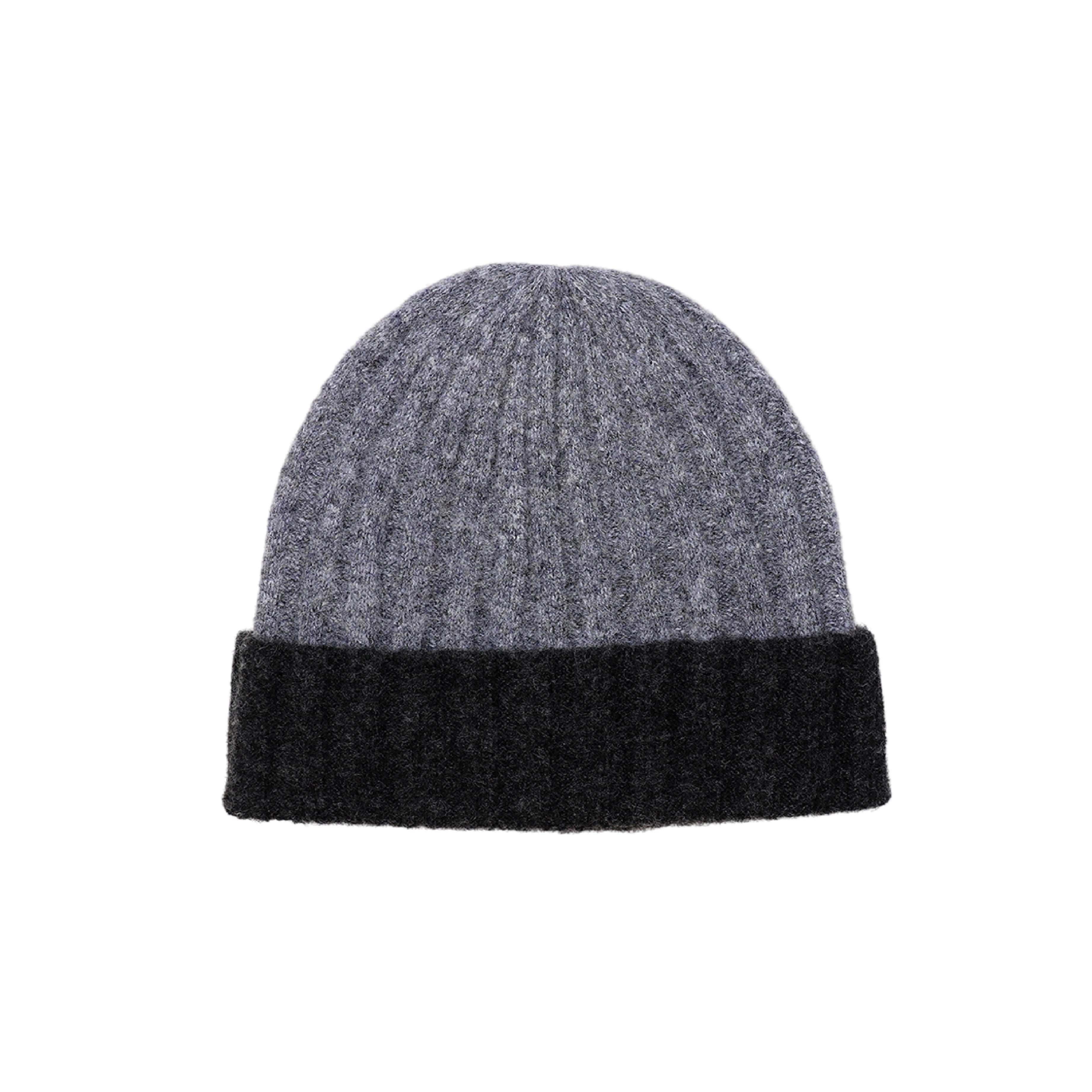 Men's Ribbed Colour Block Beanie Hat | Grey/Black