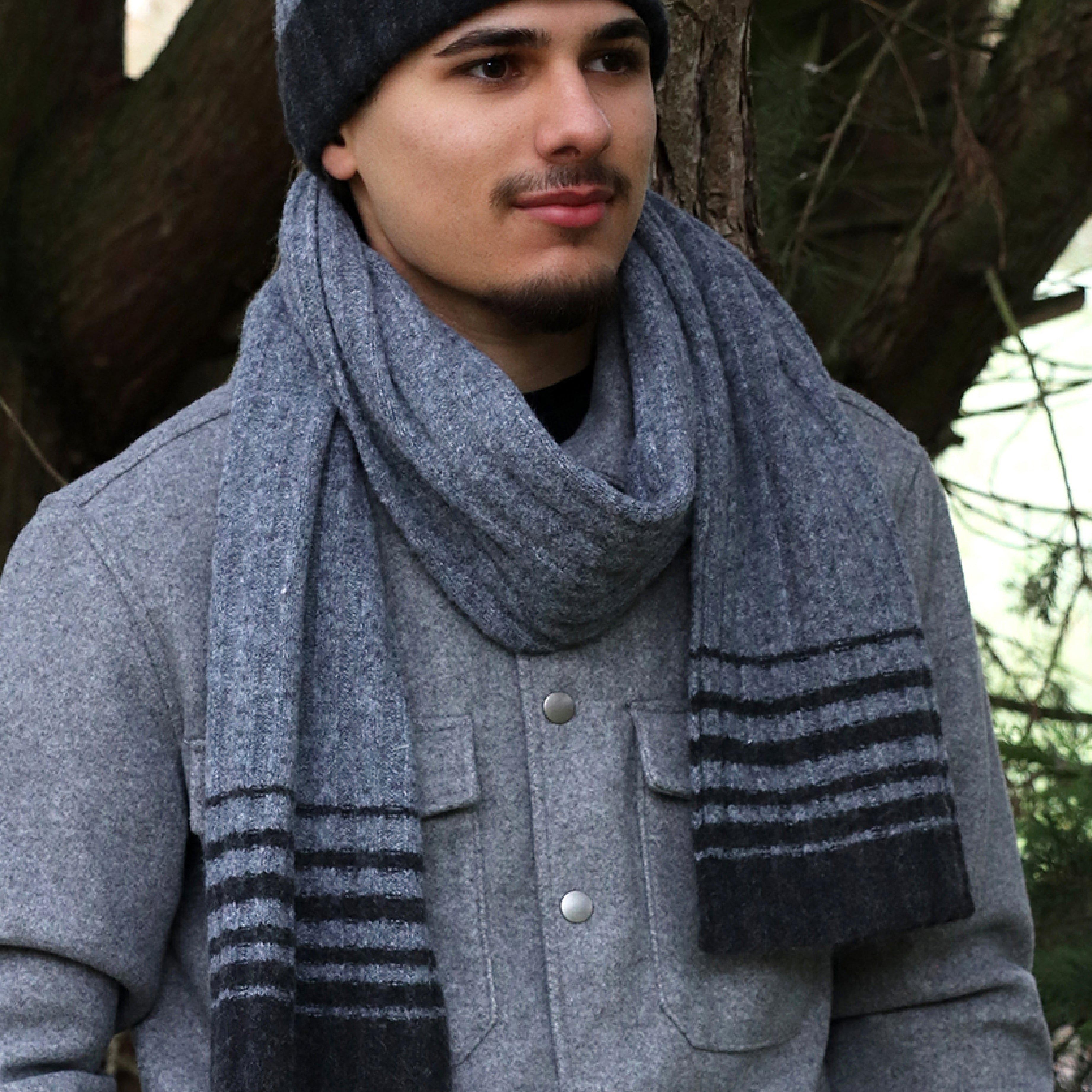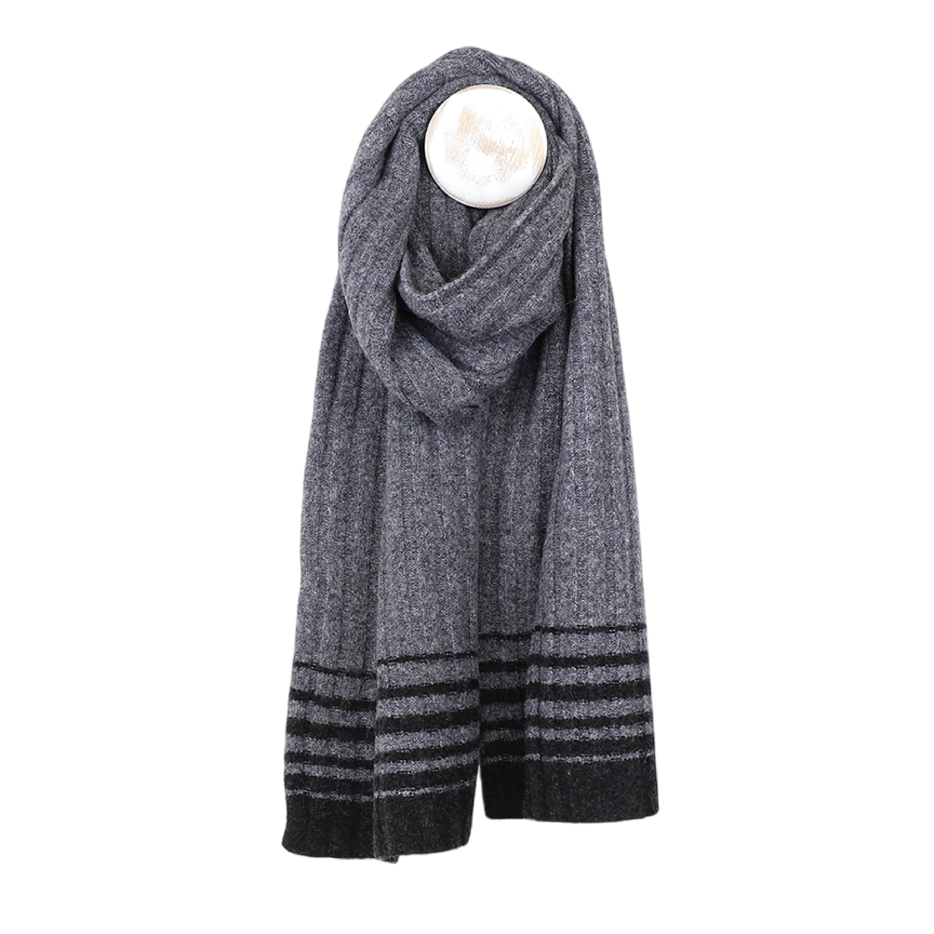 Men's Ribbed Knit Winter Scarf | Grey/Black