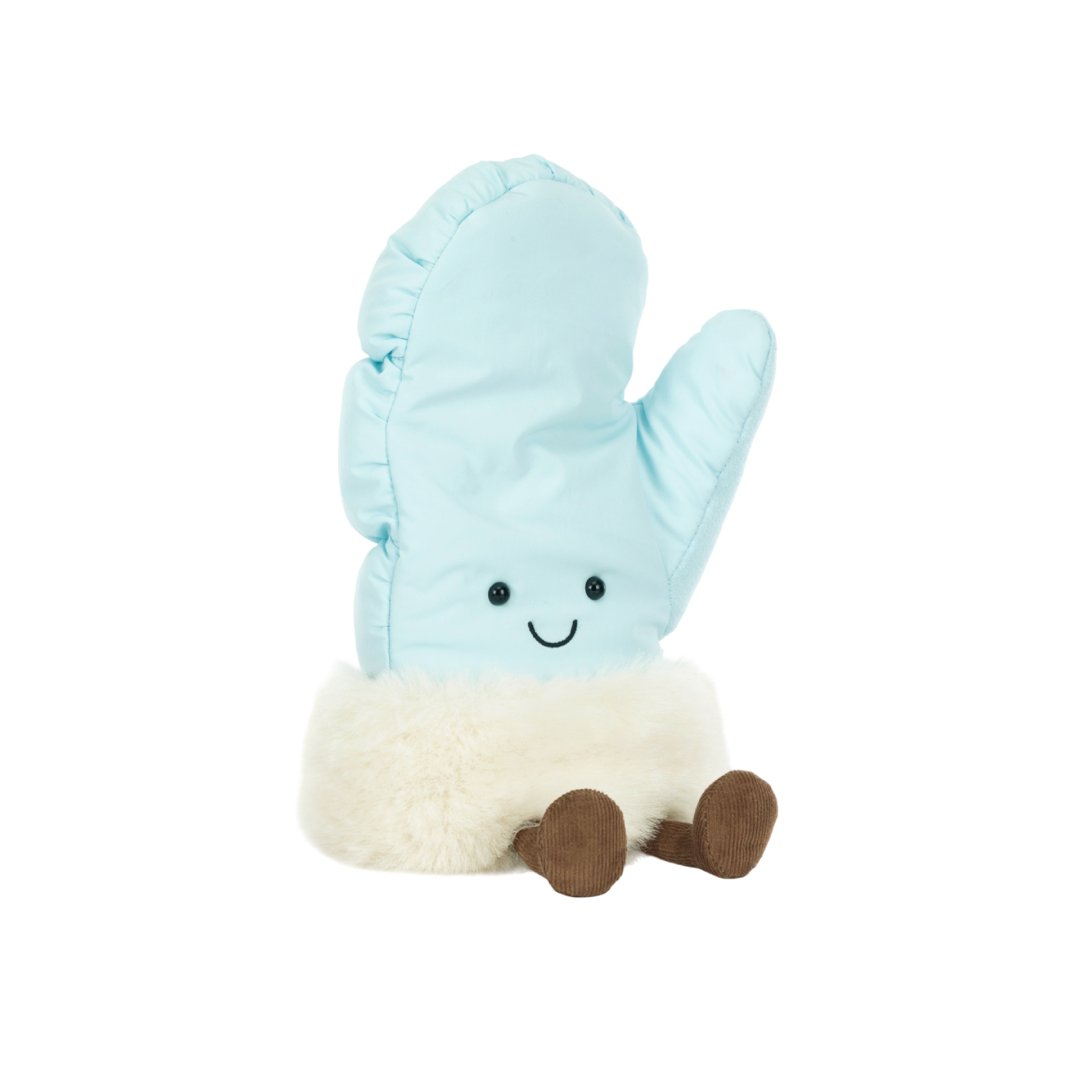 Jellycat’s Mitten of the Amuseables Collection defines winter. Crafted from plush polyester coloured blue, they feature a faux fur cuff and wear friendly beaded eyes. Complete with corded legs and forever stitched smile - Jellycat’s soft toy is the go-to snuggle buddy come colder months.