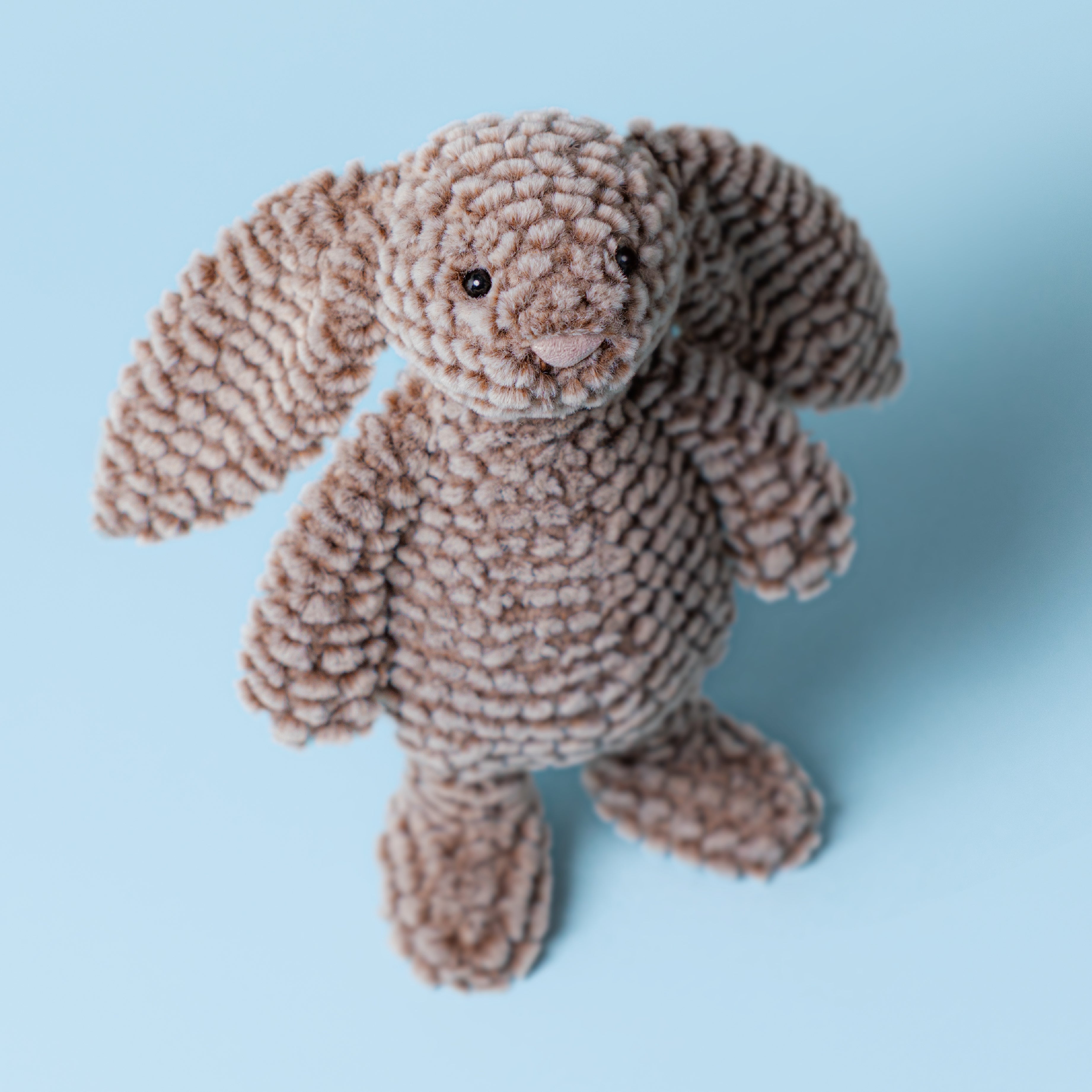Jellycat’s bunny of the Bashful Collection is luxe by definition. Covered in tufted fur coloured pine brown, they feature long lugs, boopable pink nose and friendly beaded eyes for good measure. Complete with a fine bobtail in cream - Jellycat’s soft toy is the go-to friend for winter woodland walks.