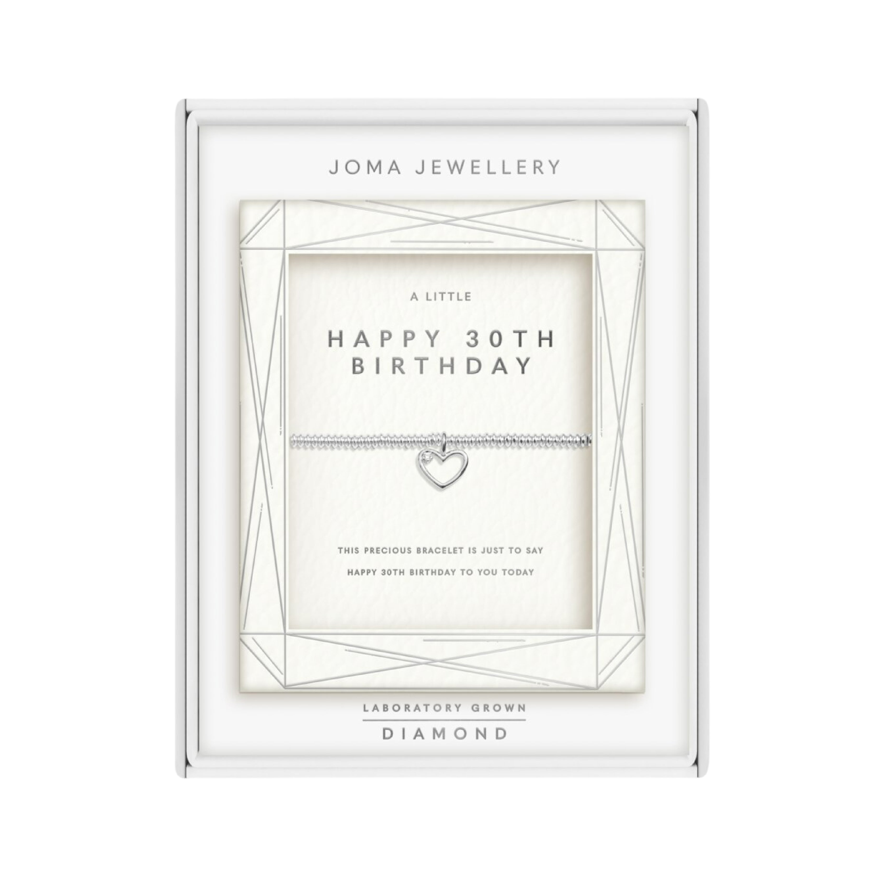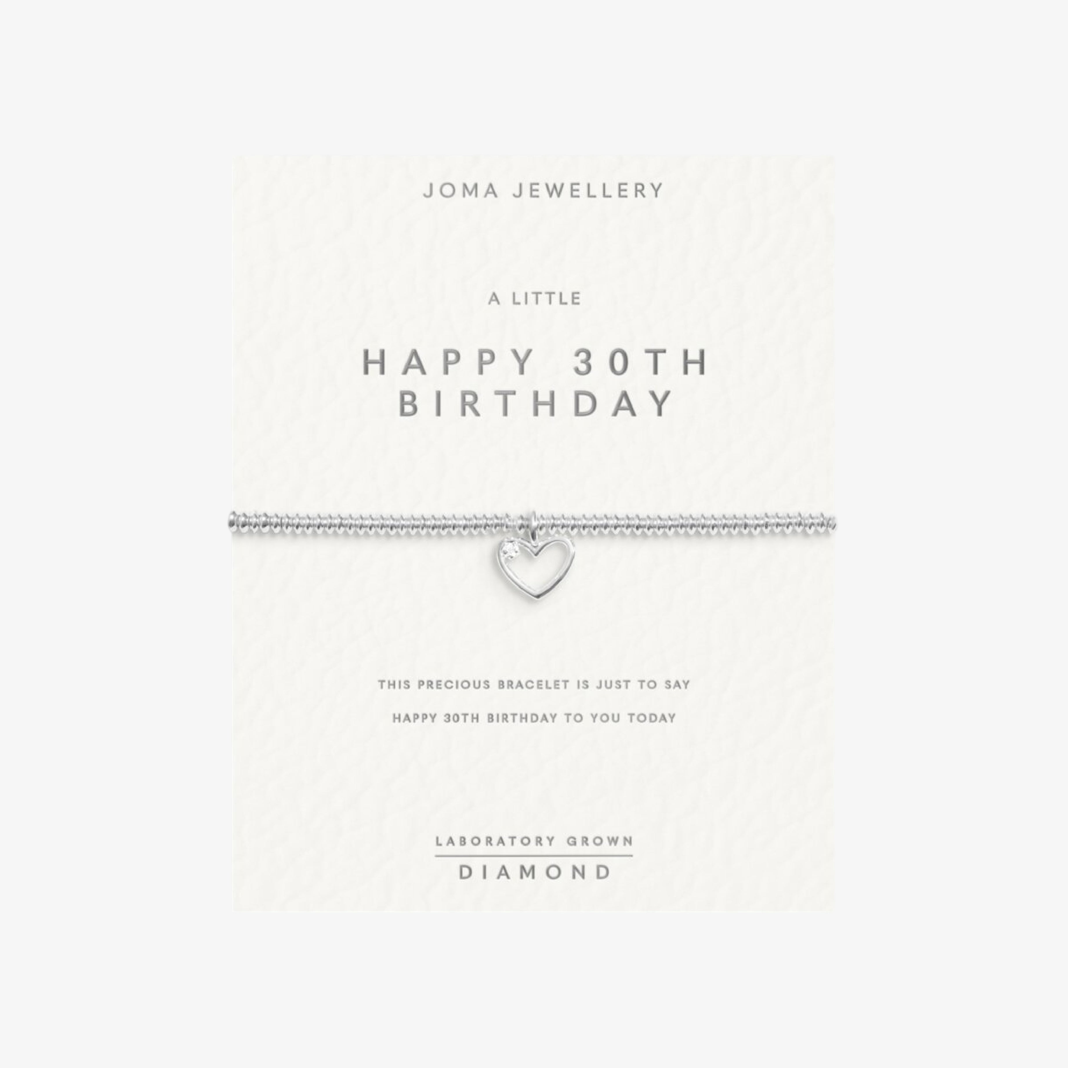 Laboratory Grown Diamond A Little 'Happy 30th Birthday Bracelet | Silver Plated