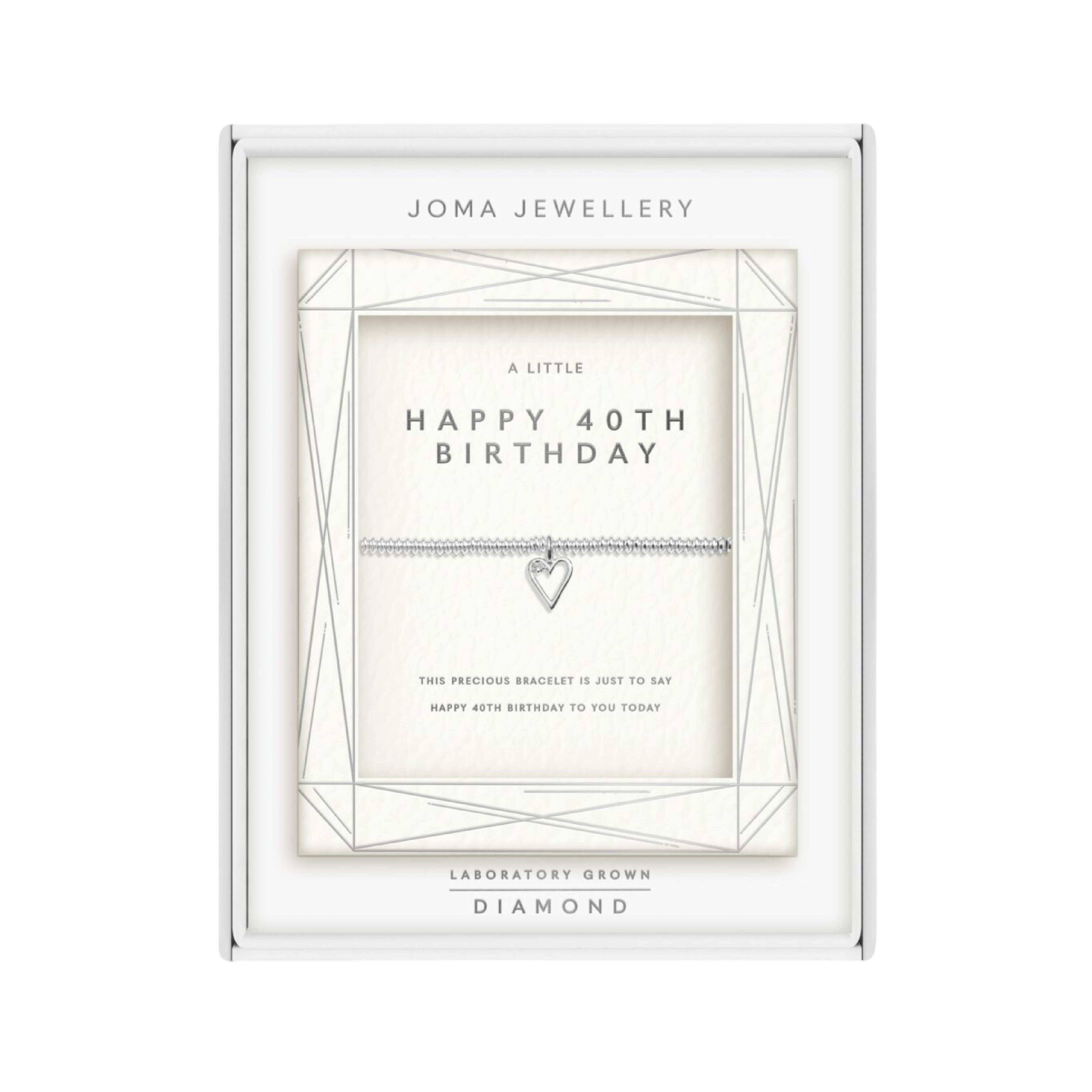 Laboratory Grown Diamond A Little 'Happy 40th Birthday' Bracelet | Silver Plated
