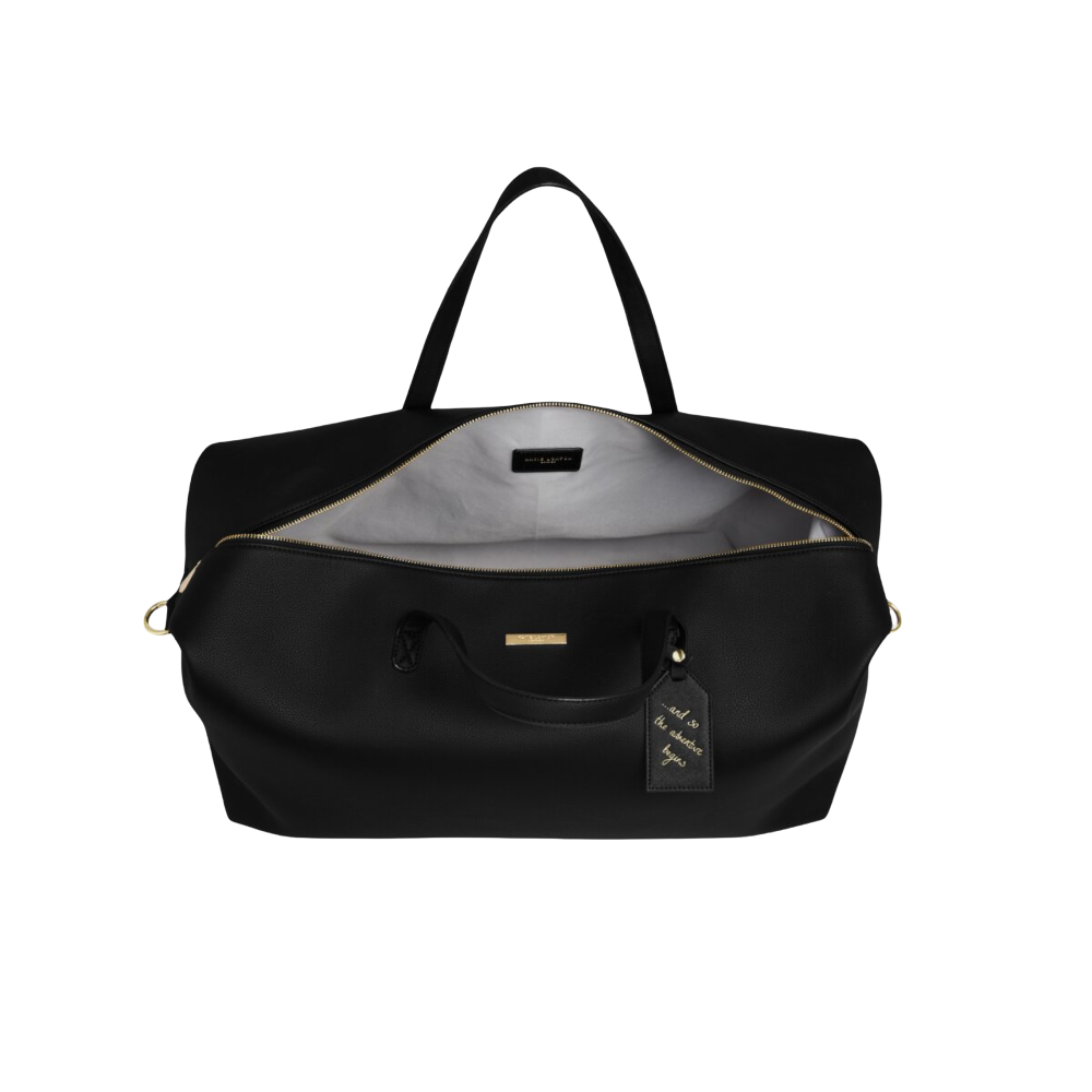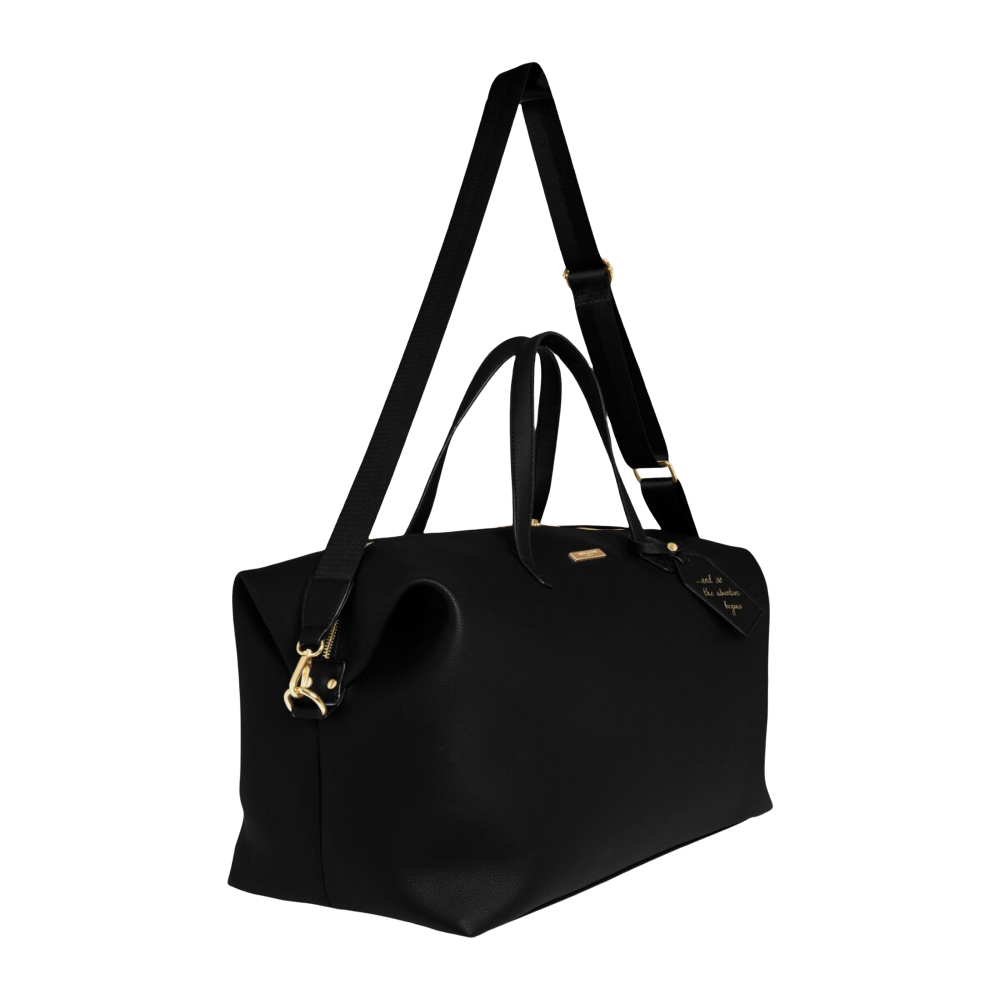 Katie Loxton’s Weekend Duffle Bag boasts a sleek black body, featuring two short handles as well as a long over-the-shoulder strap. Finished with a sweet "and so the adventure begins" luggage tag to ensure you’re always exploring in style.