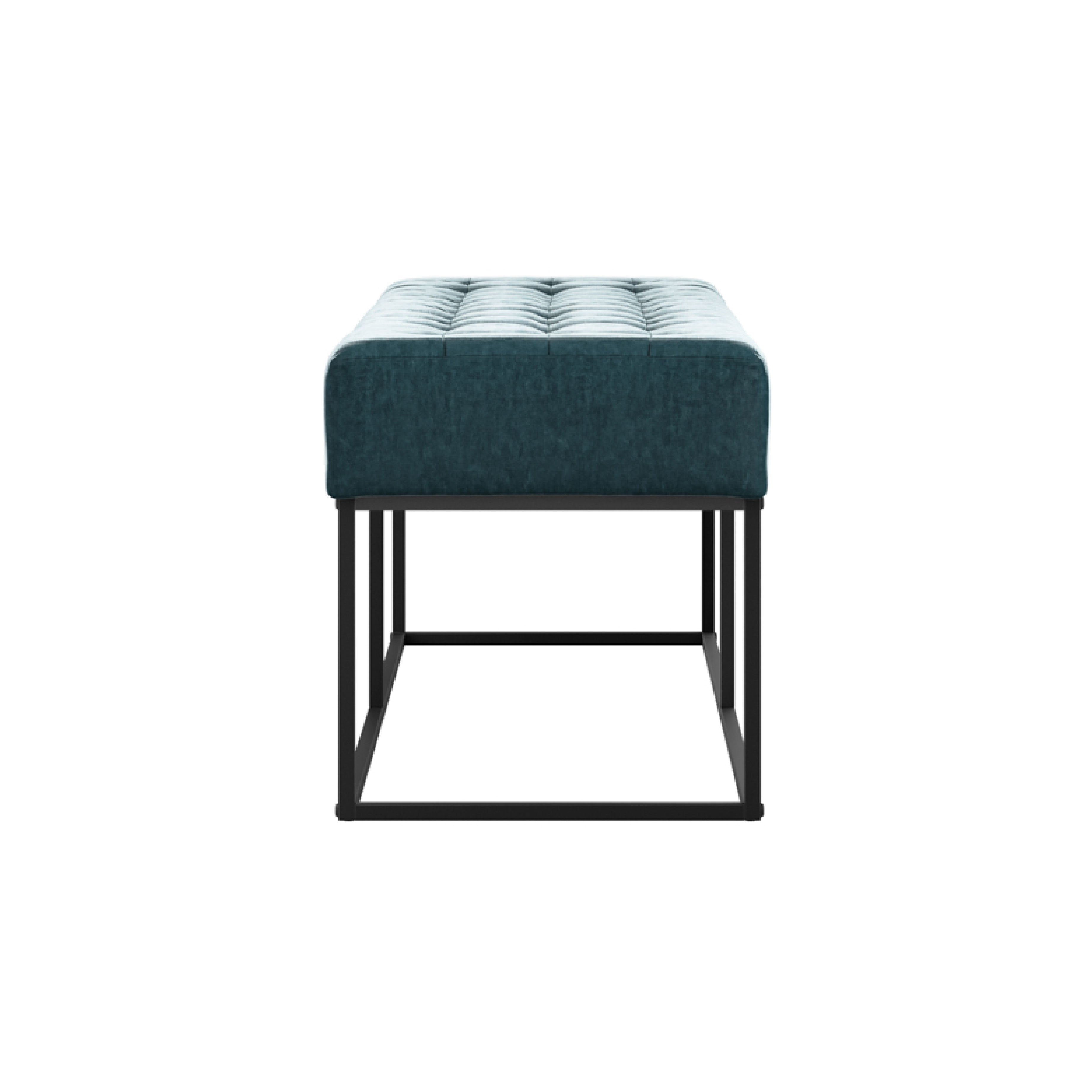 Meet the Boden Bench in Yale Blue. This bench features a cushioned seat and chic industrial-effect metal frame, offering practicality and style for any home. Its versatility knows no bounds, whether as a window seat or extra dining room seating.