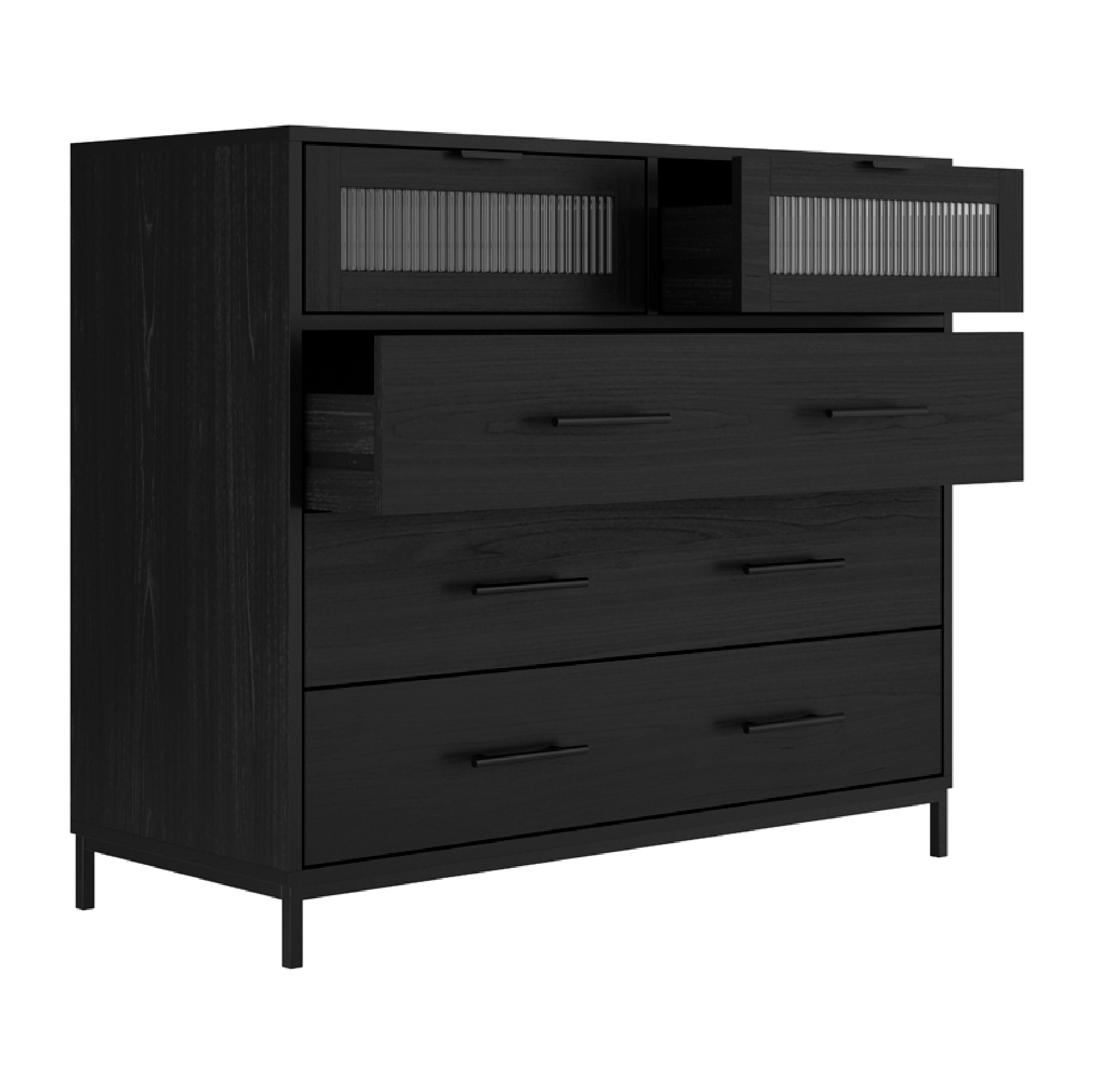 The Edison Reeded Chest in Matte Black brings a touch of sophistication to your space. Featuring a distinctive reeded texture, this chest offers ample storage with its multiple drawers. The matte black finish and sleek design make it a stylish and practical addition to any room.