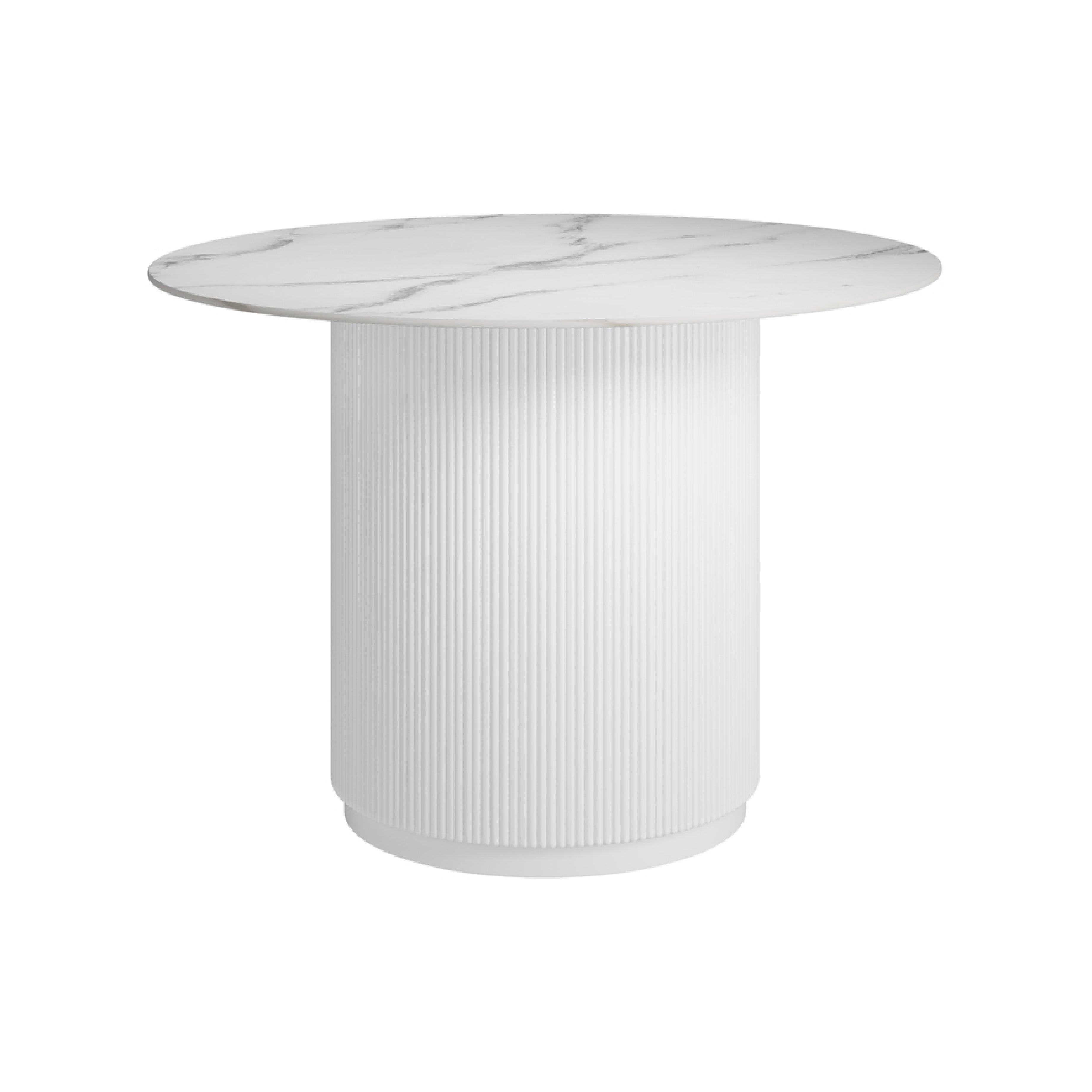 The Fuji Dining Table in Stone/White is a contemporary centrepiece for your dining space. With a sleek stone top and white base, it's perfect for casual meals and formal gatherings. This table adds a touch of sophistication to any dining room.