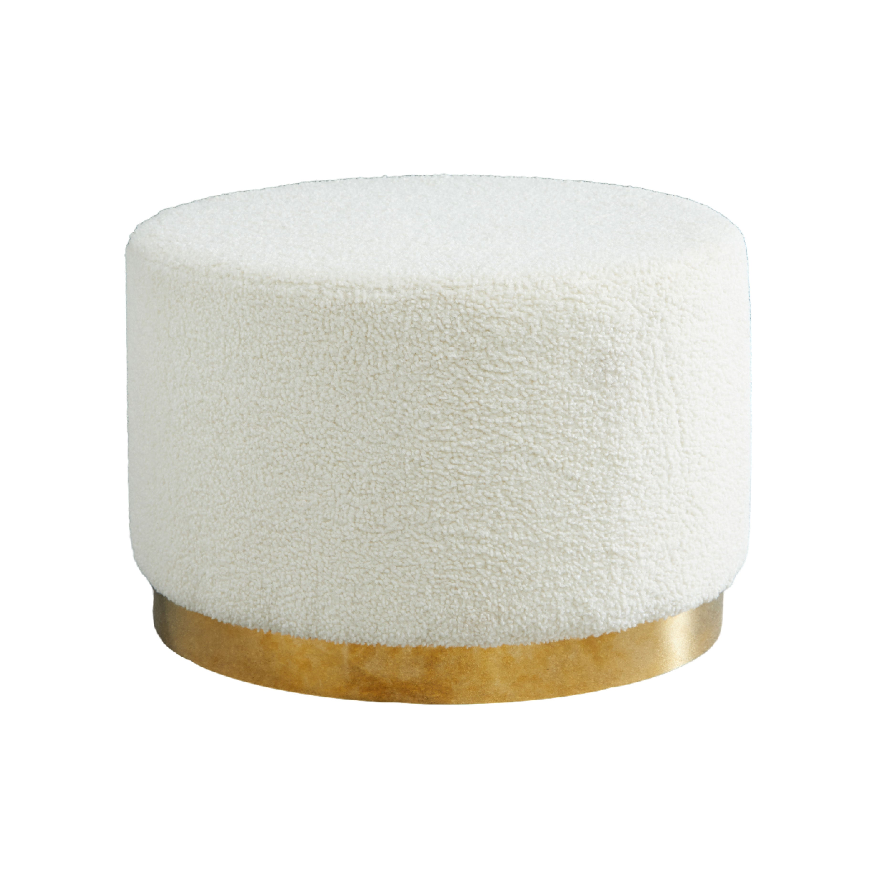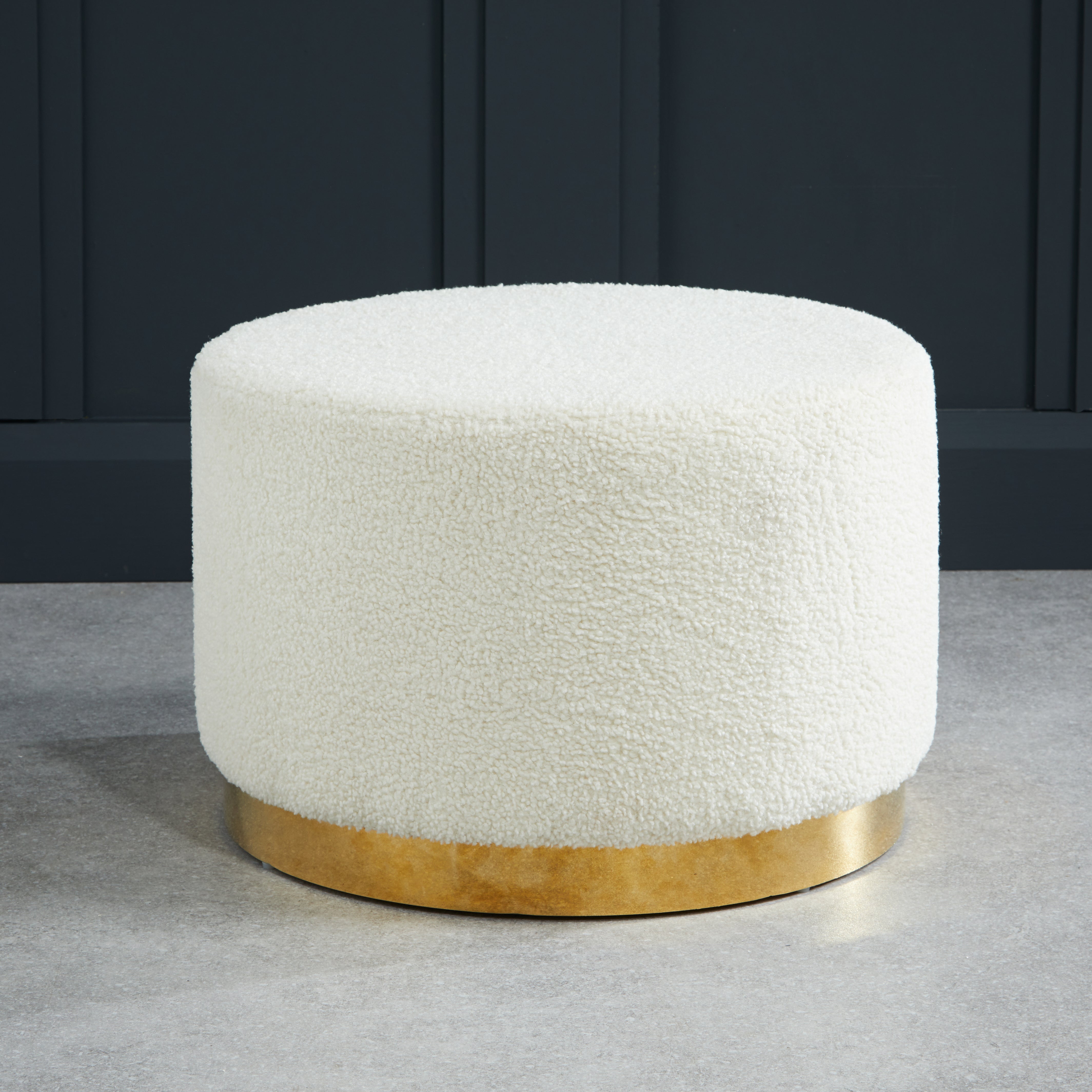 Add a touch of luxury to your living space with LPD Home’s shearling fabric Lara pouffe. Resting on a stylish gold-effect circular frame, this piece will elevate your decor and become a focal point in any room.