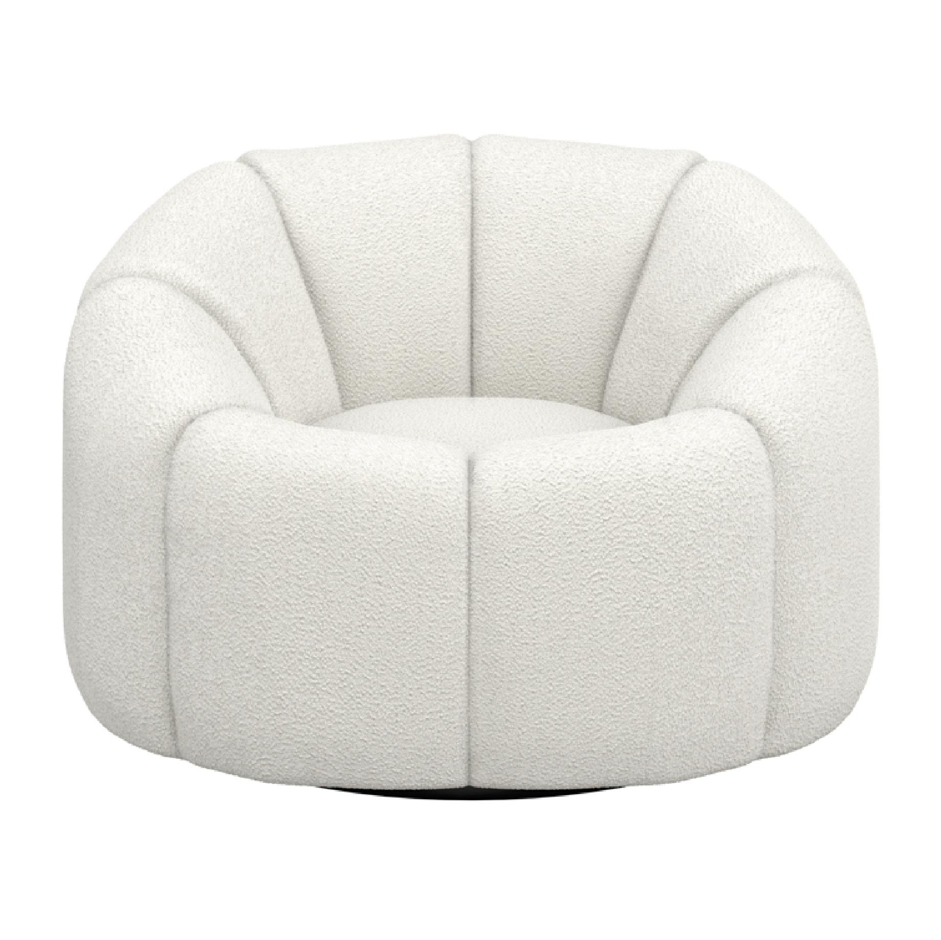 The Nao Swivel Chair in Ivory offers comfort and style with its soft, cream-coloured upholstery. Designed for versatility, this chair features a swivel base that allows for easy movement, making it a practical and elegant addition to any room.