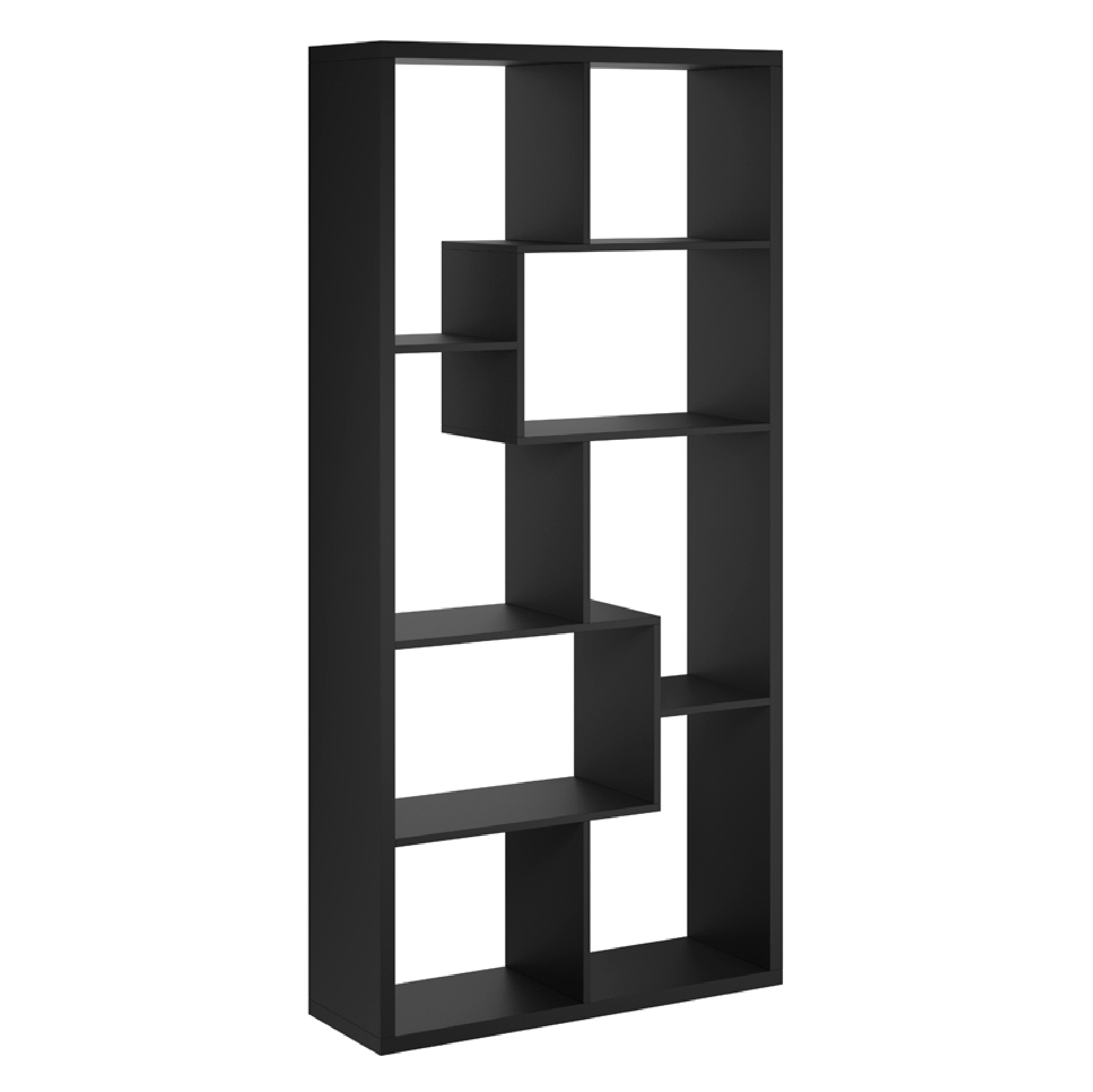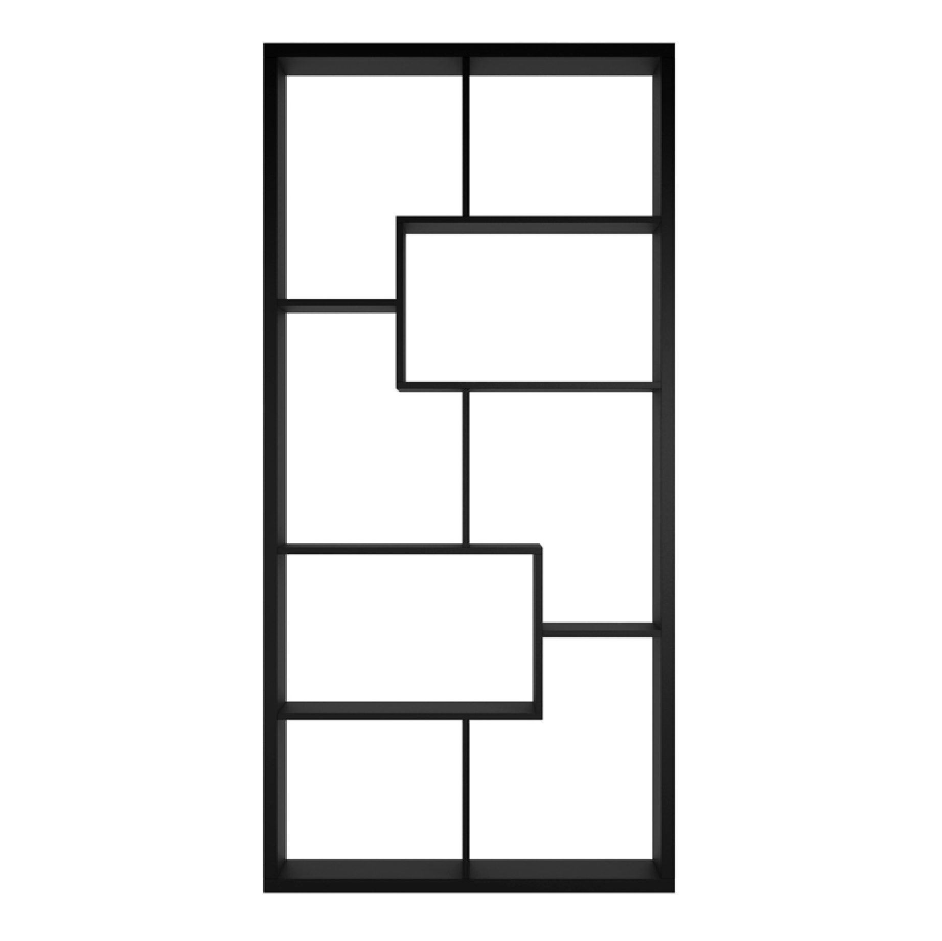 Transform your space with LPD Home’s Quebec Shelving Unit. Its unique and abstract design adds flair to any room. The sleek black finish enhances its contemporary style, making it a statement piece. With shelves of varying sizes and shapes, this freestanding unit offers ample space to display your belongings, ensuring functionality and modern aesthetics.