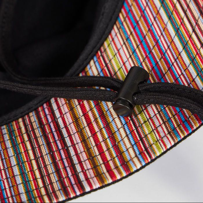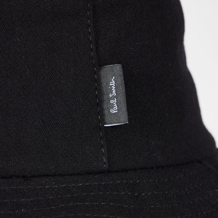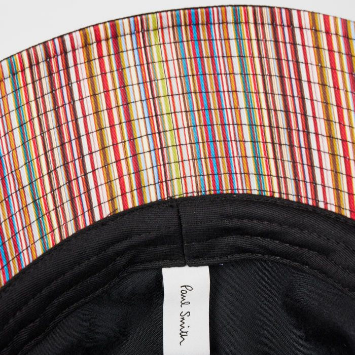 Paul Smith’s bucket hat comes crafted from premium cotton coloured black. Featuring a classic silhouette with a wide brim and chin cord, its inside boasts Smith’s iconic signature stripe motif in multicolour. Whether by the beach or festival bound - Smith’s bucket hat is a summer-staple.