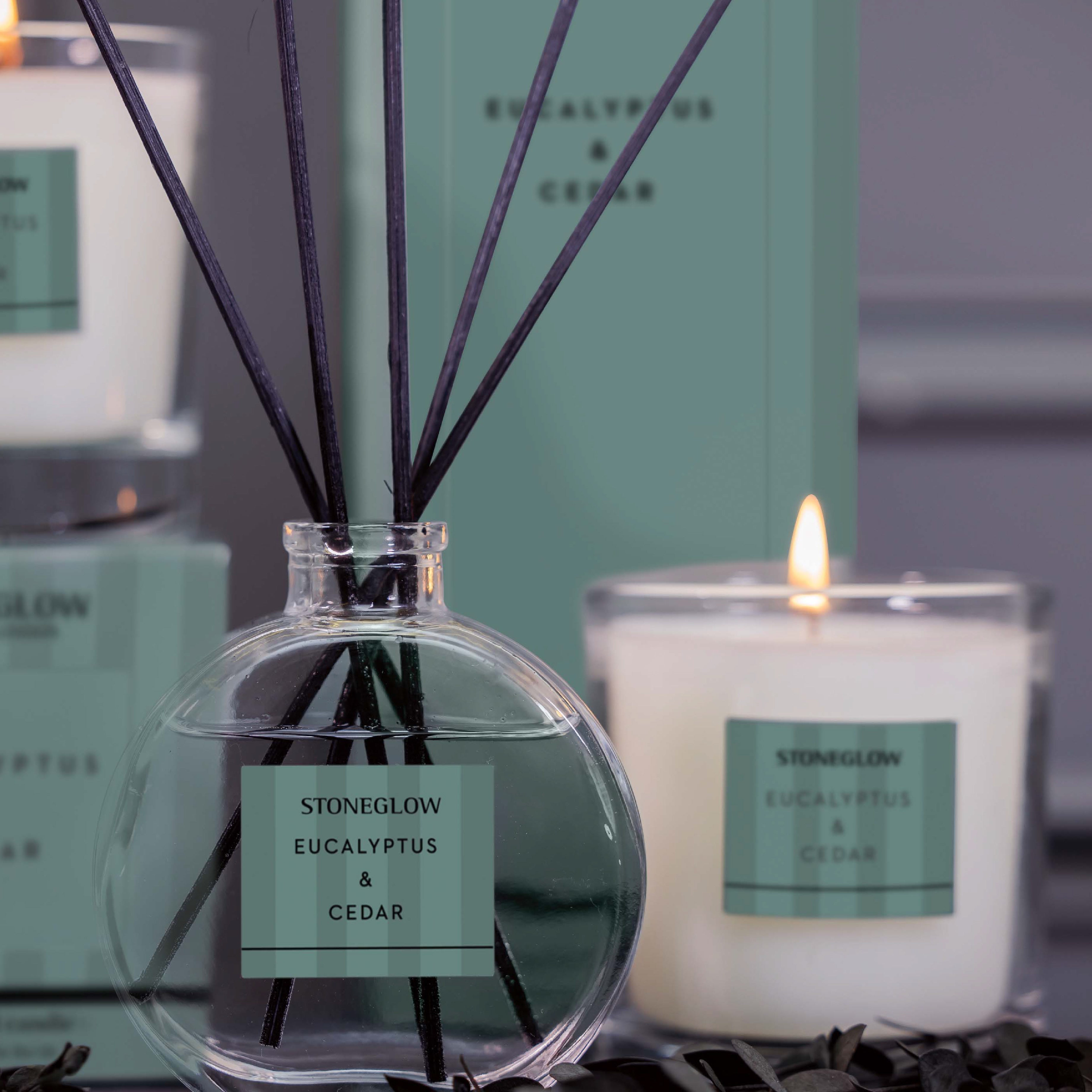 Cool eucalyptus blended with soft peach and fresh bergamot, on a bed of blush roses and aromatic lavender, brought together on a base of warm, woody cedar, the perfect scent for cosy jumpers and frosty nights.