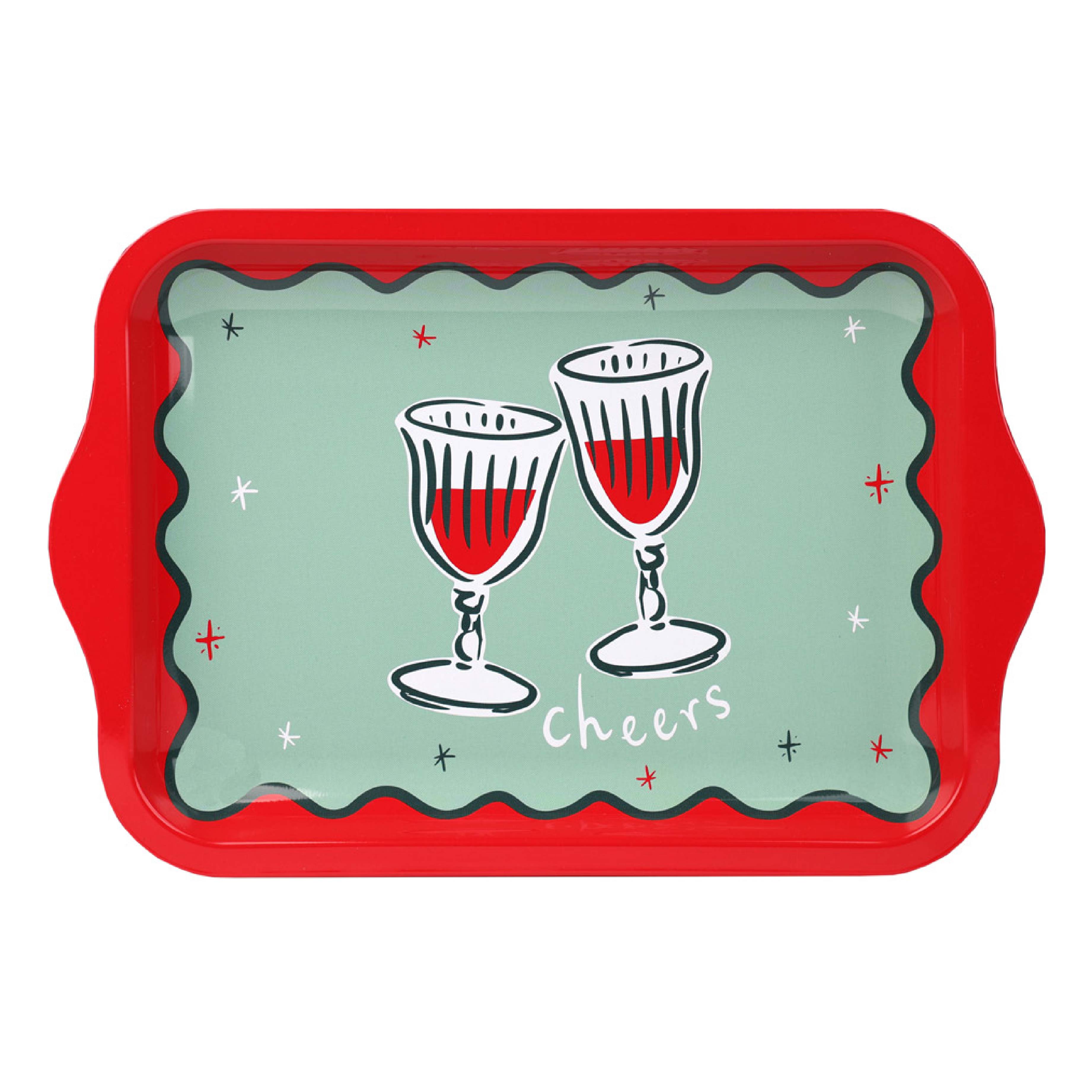 Host in style this season with Talking Tables’ chic serving tray of their Bon Noel Collection. Crafted from tin coloured in festive reds and greens, it boasts a duo of wine glasses and sentiment at its centre. Complete with an on-trend scalloped edge; whether displaying drinks or dessert - Talking Tables’ serving tray is fundamentally festive by design.