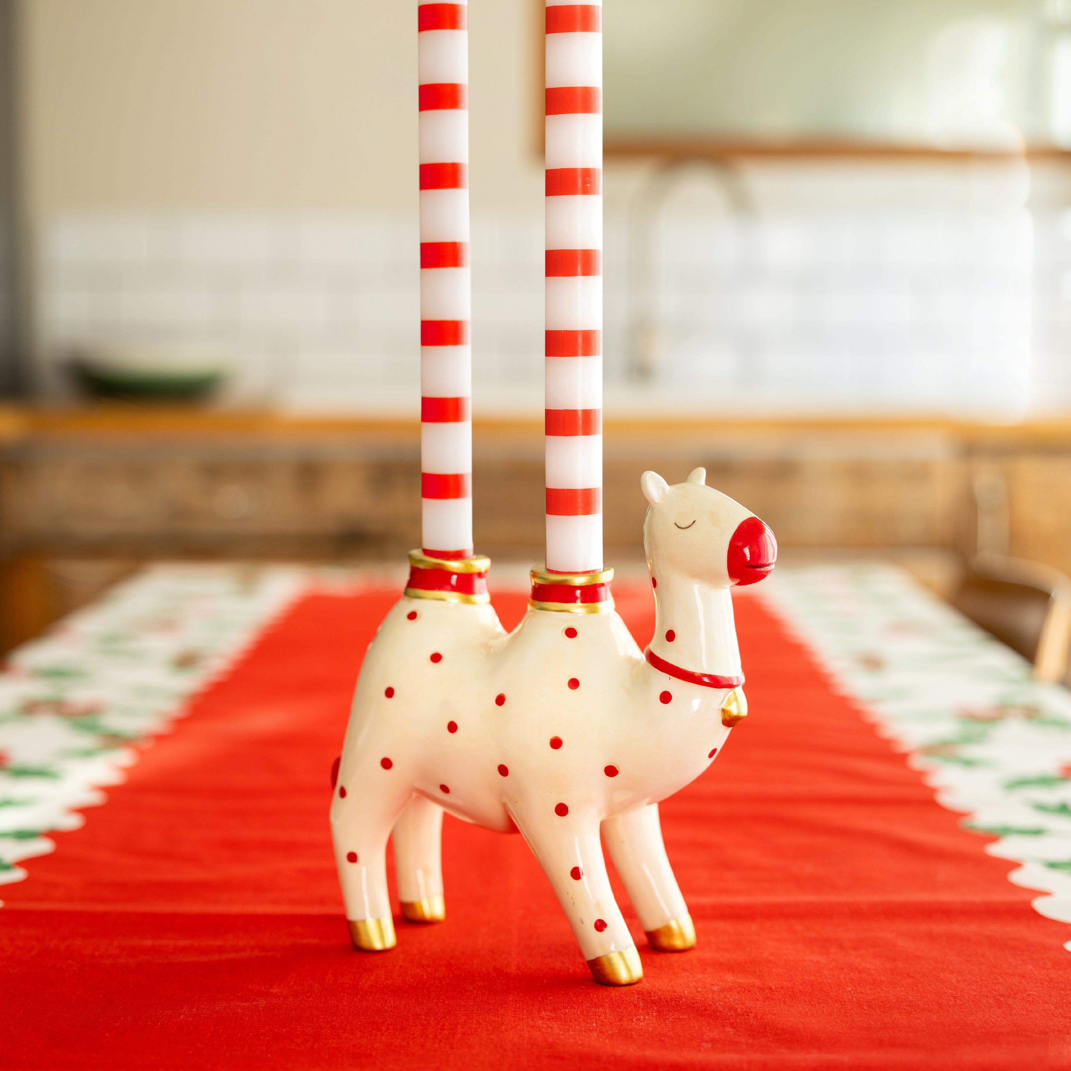 Talking Tables’ festive 2-taper candle holder is double-take worthy by design. Carefully crafted from ceramic, it boasts a camel-shaped silhouette with Christmas-inspired colourways and sparkling gold accents. Finished with a matte glaze; so striking is Talking Tables’ holder - tapers are hardly necessary.