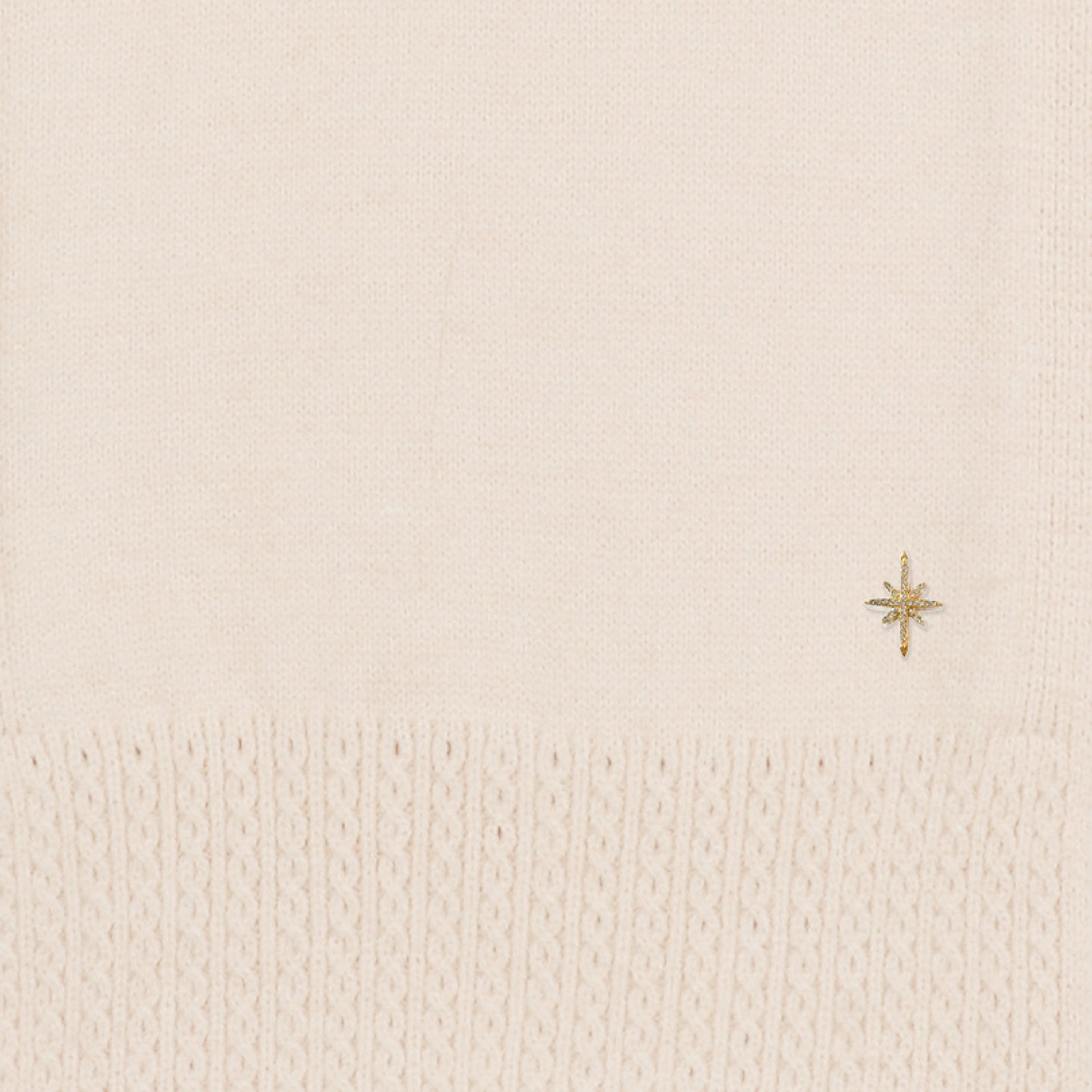 Zelly’s winter scarf is a wardrobe staple come colder months. Crafted from a plush chinlon blend coloured cream, it features chic cable knit details on each end, and comes complete with a statement star on one side. Whether sporting for morning runs or afternoon strolls - Zelly’s accessory renders the everyday a catwalk.