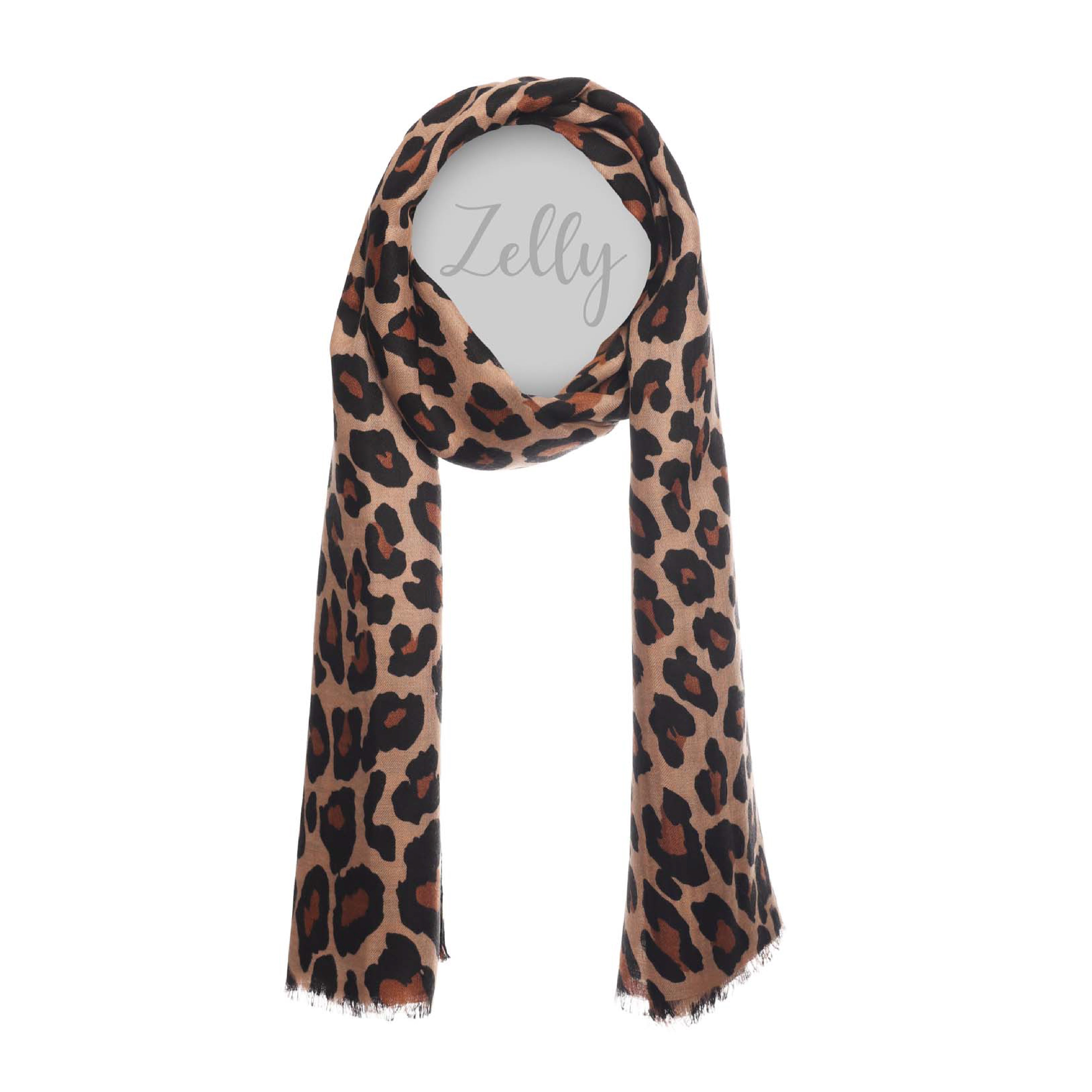 Elevate any outfit with Zelly’s autumn-inspired scarf. Crafted from silk-feel viscose coloured brown, it comes adorned in a beautiful leopard print, and boasts chic eyelash fringe edges. Whether wrapped around neck or styled on bag - Zelly’s midweight scarf is double-take worthy by design.