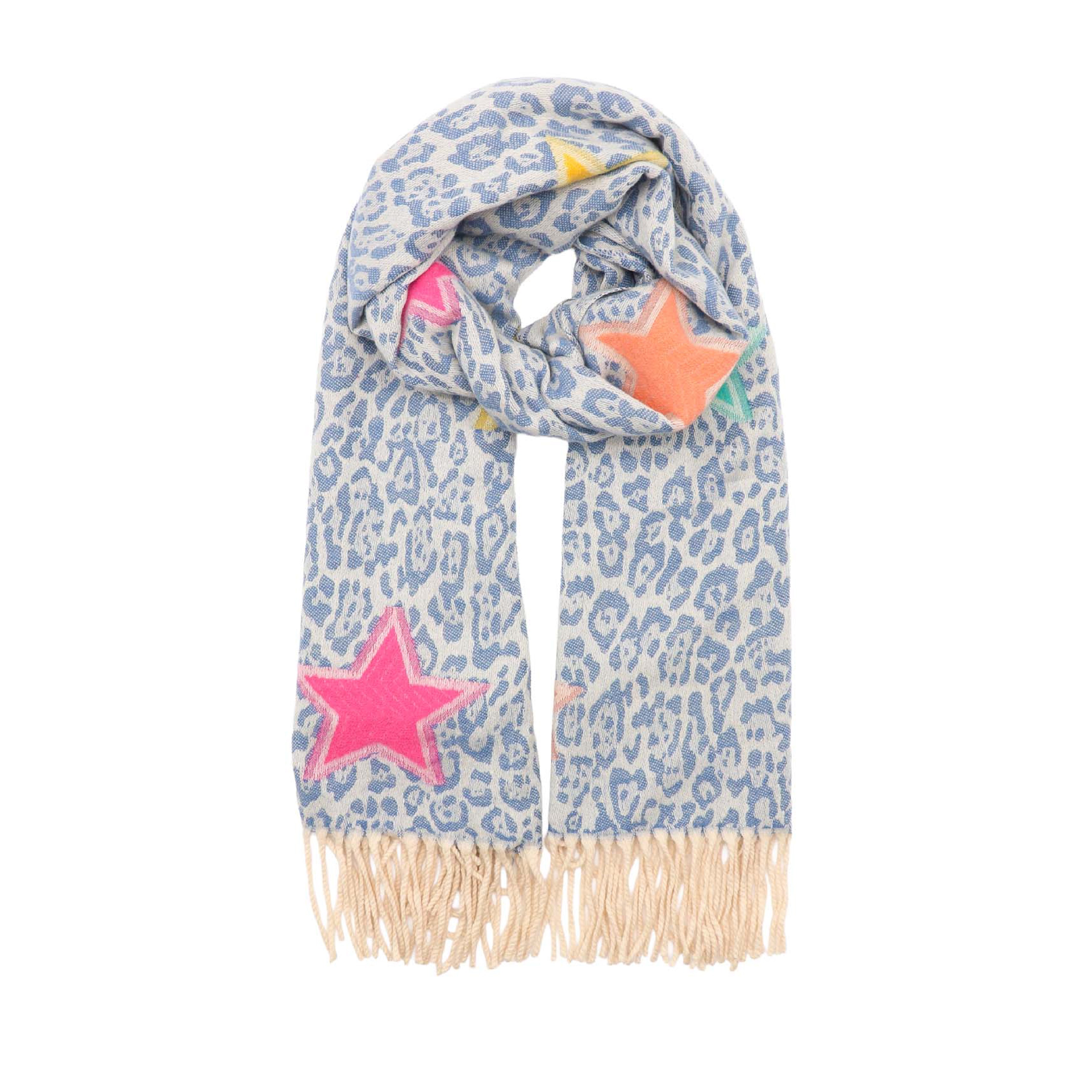 Women's Winter Leopard Print Scarf with Stars | Blue