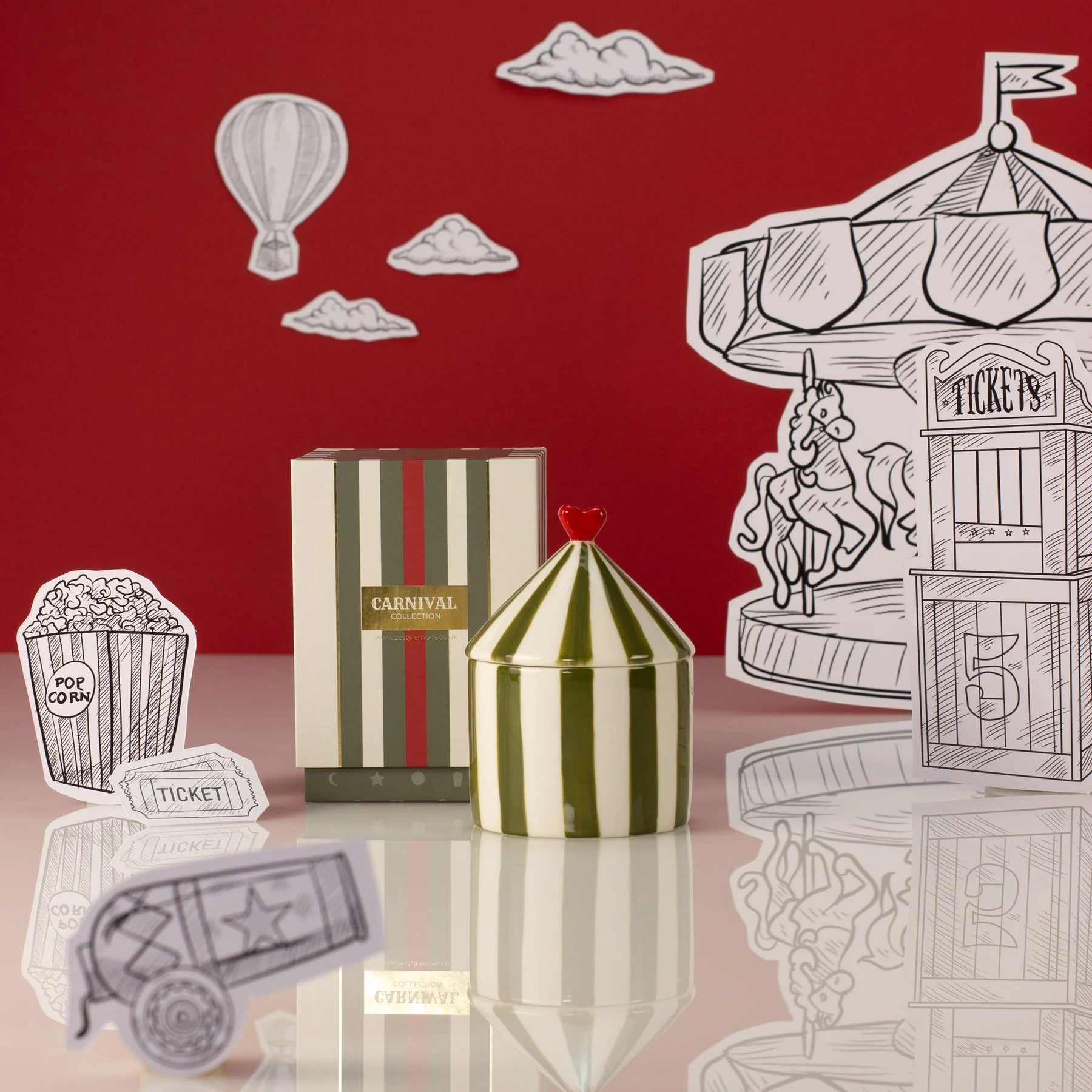 Zesty Lemons’ candle of the Carnival Collection isn’t like any other. Featuring a striped ceramic vessel shaped like a circus tent, it comes fragranced with tomato leaf and housed in a chic matching box with gold foil details for good measure. Topped with a brilliant red heart; so striking is their candle - you’ll hardly want to burn it.
